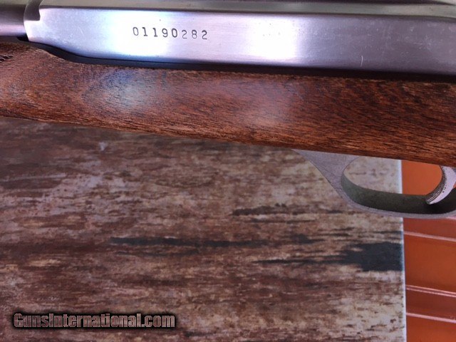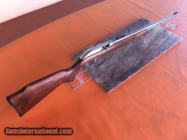 Description: Marlin Model 60 SB - Semi - Auto Stainless Steel Model w / 14 round SS tubular magazine, 22 in. barrel and 41 in overall lgth., weight 5.5 lbs. , groove receiver for scope. Upgraded w/ New Williams Fire Sight fully adjustable rear sight with green dots and front sight with red dot. Monte Carlo style checkered walnut refurbished hardwood stock . SS barrel and receiver are in good condition. Bore showing nice grooves and is clean and bright. No major dings or dents. Butt plate is in good condition . These stainless steel models can be lifetime guns with minimal maintenence and they continue to appreciate in value. All of our rifles have been cleaned and lubricated . We will ship to FFL holders and FFL dealer. Shipping is charged at cost . Rifles are approx. 50.00 with freight / insurance. SOLD Rifle Caliber: .22 Long Rifle |