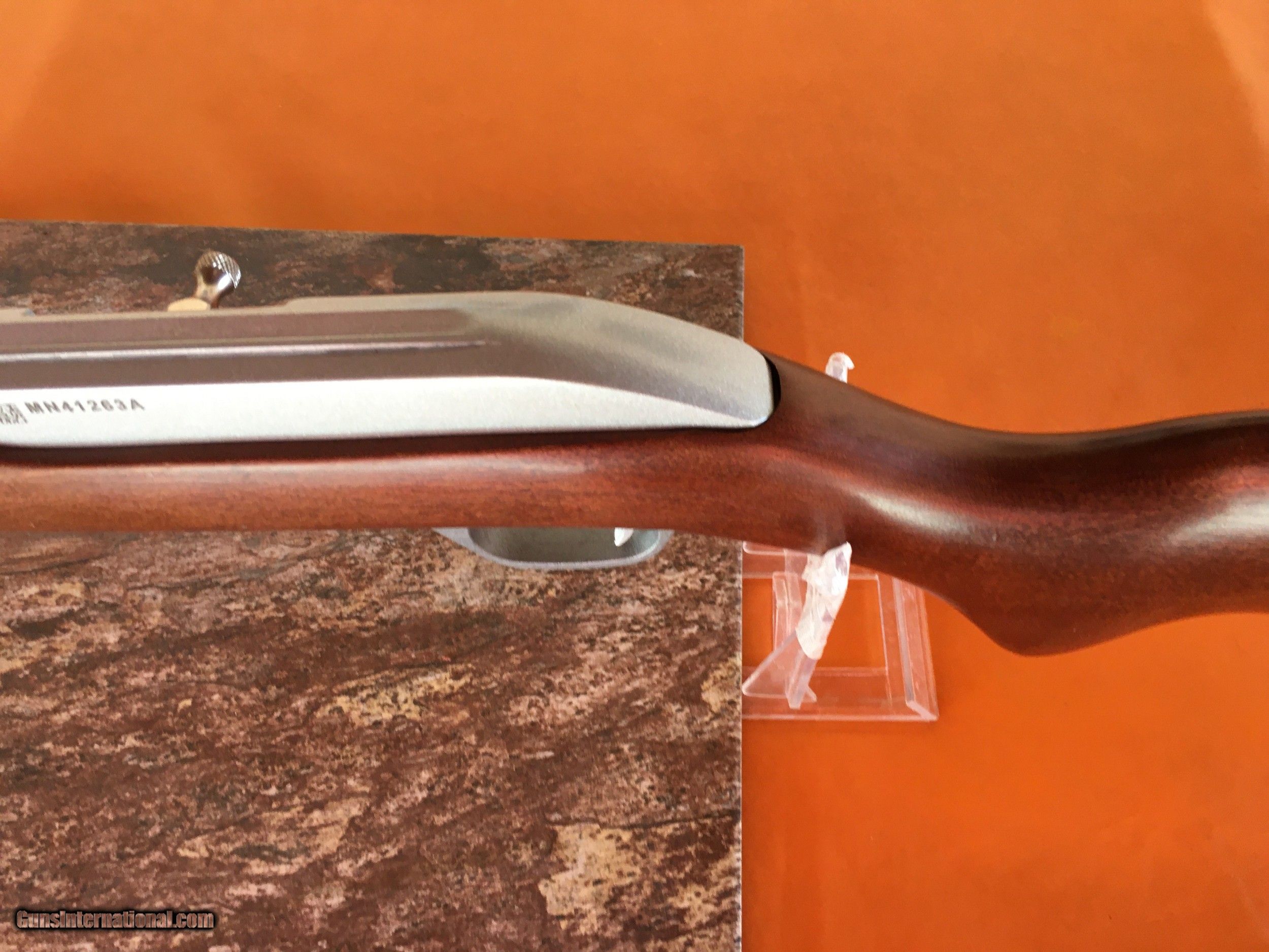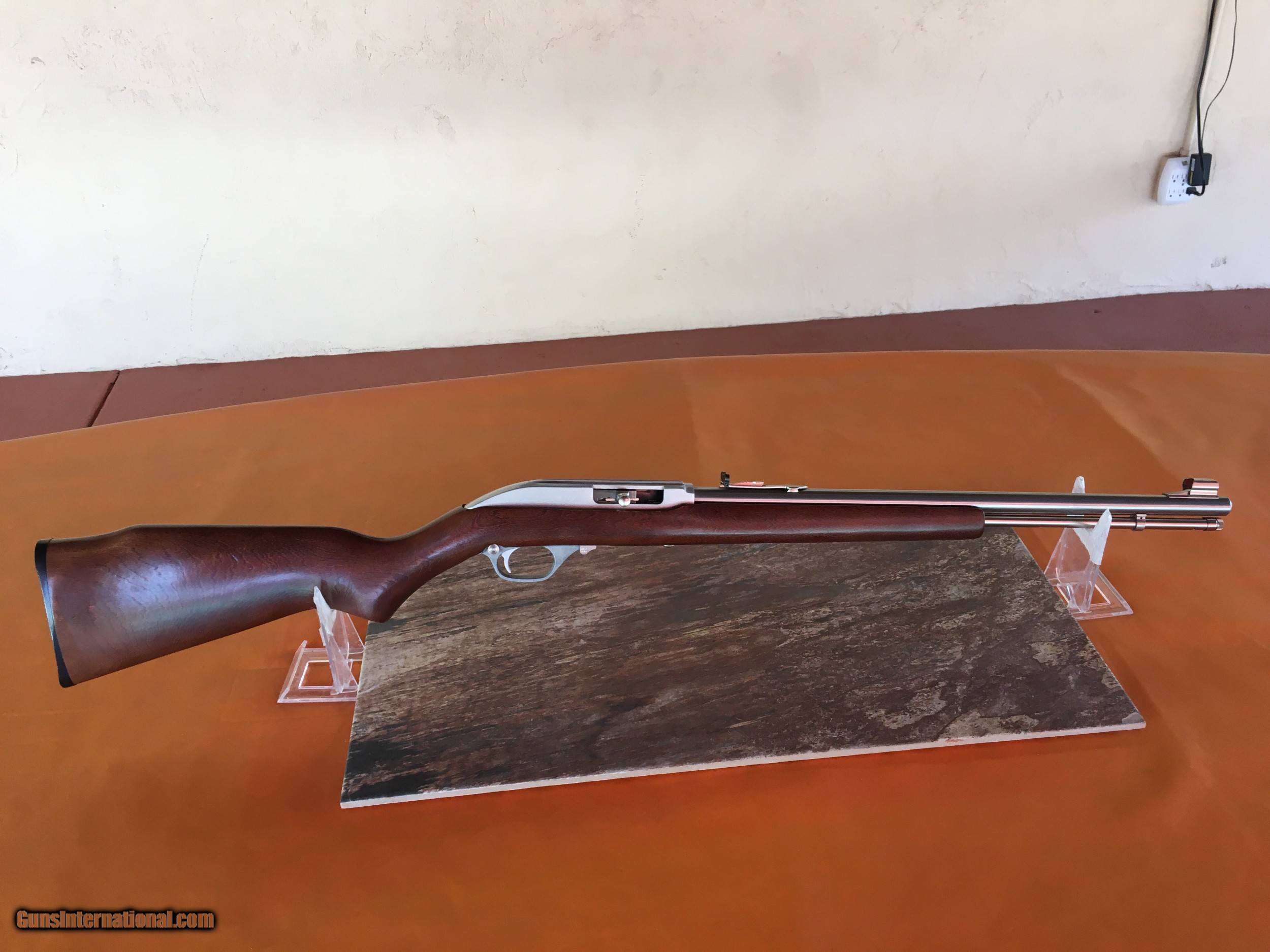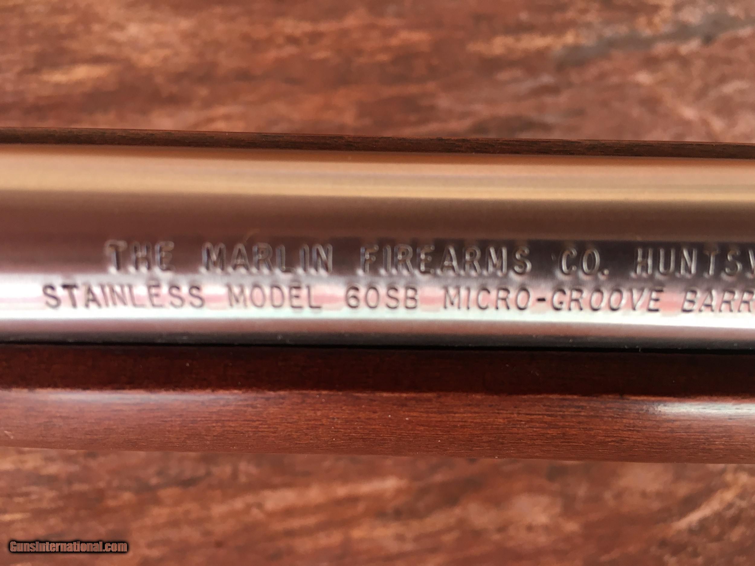 Description: Marlin Model 60 SB - Semi - Auto - .22 LR Rifle - Smooth Monte Carlo pistol grip hardwood stock. 22in . long Stainless Steel barrel with SS open rear sight and front orange blade with open hood. SS tubular magazine with 14 LR round capacity. Aluminum receiver is grooved for scope. Bore is clean and bright micro- grooves like new. 40.5 in overall length . Wgt. 5.5 lbs. Butt plate like new. Stock and forend are virtually flawless. Rifle is in like new condition with very little use. Manufactured from 1993 - and currently no new models are available. All of our rifles have been cleaned and lubricated . We can ship to your FFL dealer at a flat rate of $50.00 S&I to lower 48 states. SOLD Rifle Caliber: .22 Long Rifle Manufacturer: Marlin Model: 60 SB Serial Number: MN41263A Barrel Length: 18 IN. Condition: Like New Weight: 5.5 lbs Sights: Open / Orange blade |