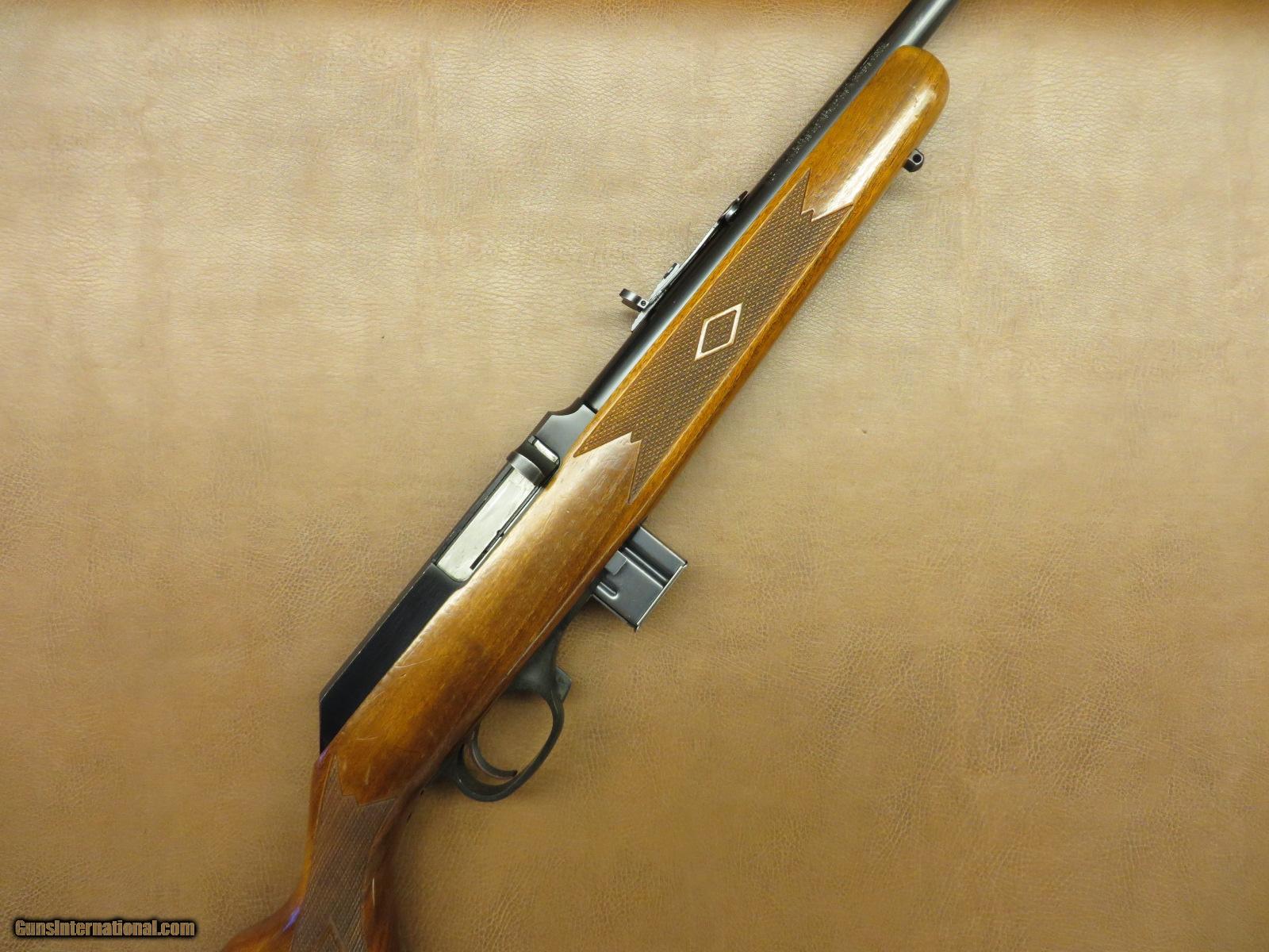 Description: .22 Magnum clip fed semi auto has 20 1/2 inch barrel with original sights. Checkered walnut stock with sling swivel studs and the original rubber butt pad. Blue is 90-95% and the wood is 85-90%. SOLD |