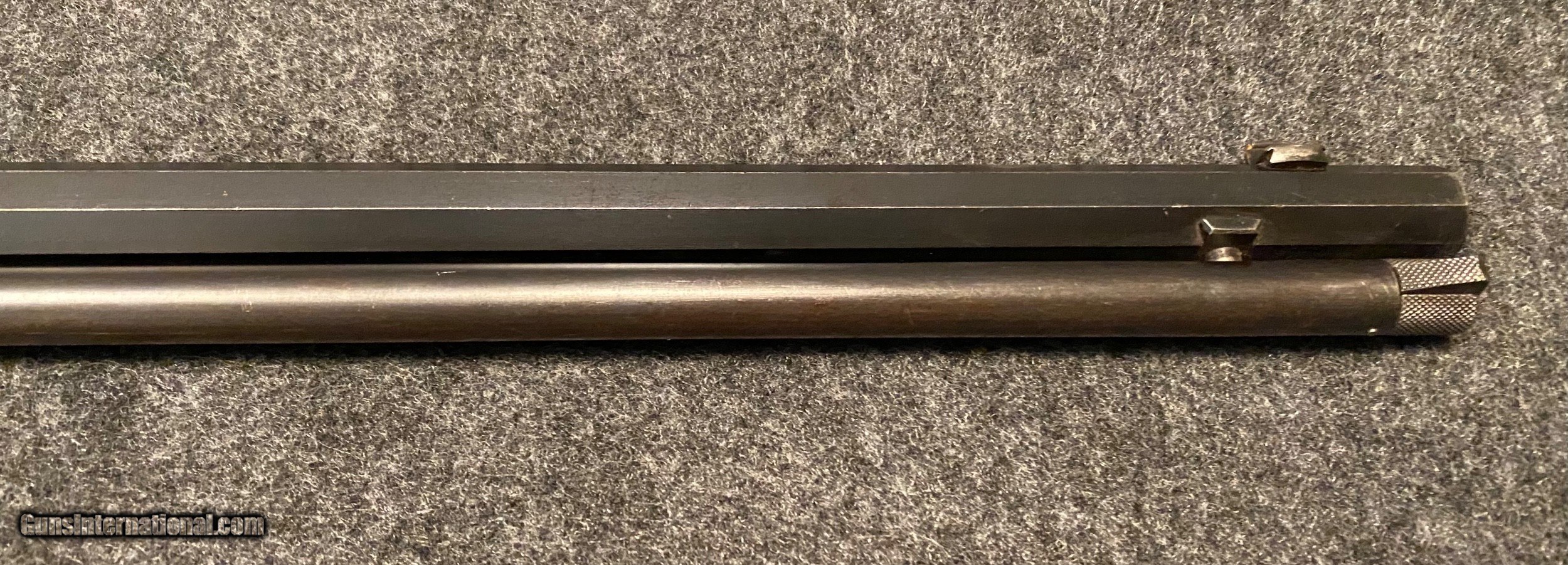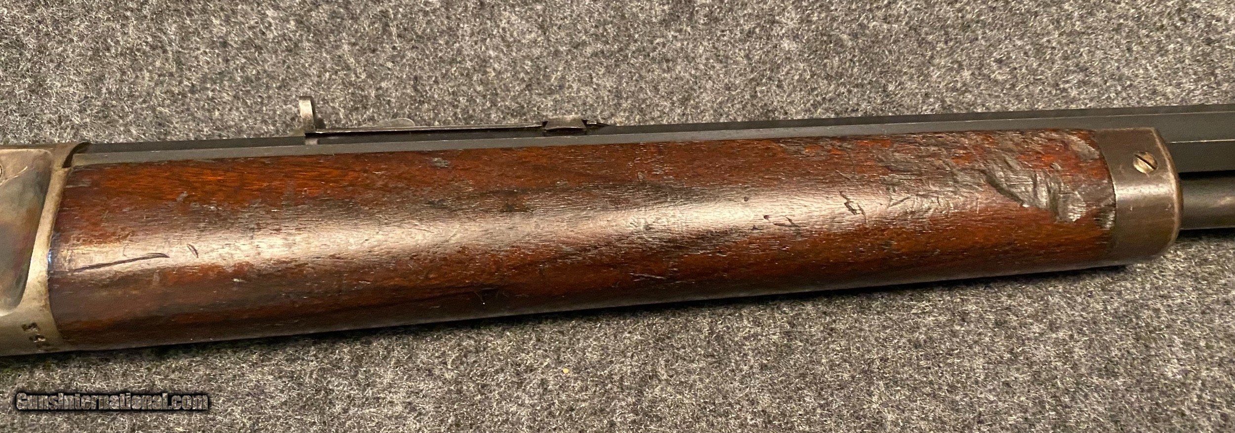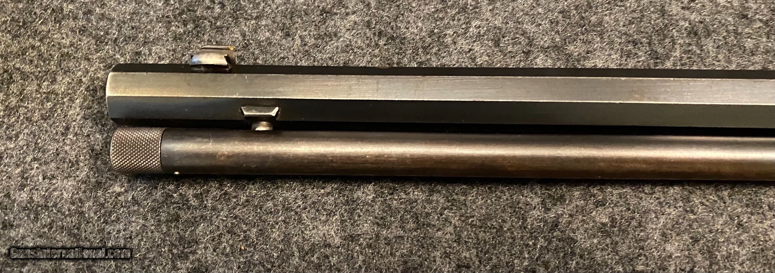 Description: Marlin Model 97 .22LR. The action is very clean with strong case colors remaining, the seams are very tight with no gaps indicating that the take-down feature was not utilized often or at all. Flat top receiver with 3 factory holes and filler screws, no evidence of having been turned or any sight mounted, two factory holes for a tang peep with no evidence of having been turned or any sight mounted, markings are crisp with sharp edges. The barrel is a full length octagonal with good blue and bore, Marlin markings and patent dates are all clear with sharp edges, blue is factory blue with loss at edges and one small patch nearr the muzzle at the top of the barrel, factory sights are present, tubular magazine is full length. The stocks are fair with deep dents and wear especially at the end of the fore end and the left side of the stock, factory finish is present, 13 1/2" length of pull to MFA&Co Marlin Safety butt plate. These are really neat little takedown rifles that would cost a fortune to manufacture with this quality today. 03828151 ISS $sold pending SOLD Curio/Relic: Yes Rifle Caliber: .22 Long Rifle Manufacturer: Marlin Model: 97 Barrel Length: 24 |