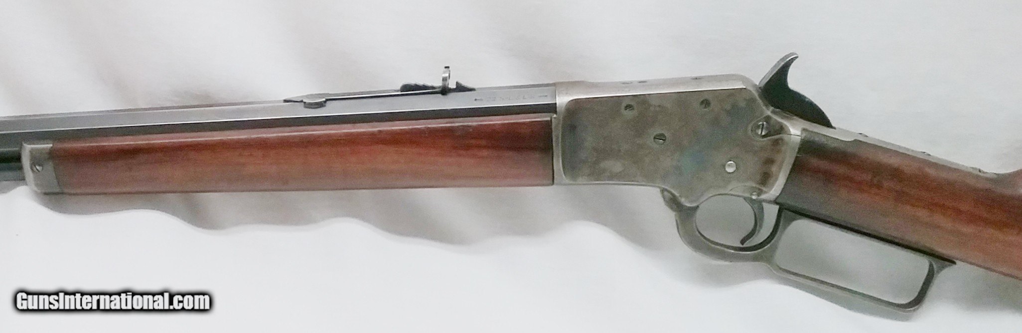 Description: This .22 caliber Marlin Model 97 lever action rifle was made between 1897 and 1917 and has a 24” blued tapered octagon barrel that is in good condition. The bore has scattered pitting throughout. The front sight is a fixed bead and the rear sight is elevation adjustable. The blued magazine tube is in good condition. The color case hardened receiver is in good condition with the exception of some light finish wear. The Walnut buttstock featuring the original synthetic buttplate and forend are in good condition with the exception of some light scratches and usage dents. Length of pull is 13-½”, overall length is 40-½”, and weight is 5.4 lbs. Our stock number is #C43. Willing to ship anywhere in the US to your FFL, buyer pays freight and insurance. SOLD Curio/Relic: Yes Manufacturer: Marlin Model: 97 Caliber Info: .22 Cal Bore: Rifled Condition: Good Metal Condition: Good Wood Condition: Good Barrels: One Barrel Type: Tapered Octagon Action: Lever Action Triggers: One Stock: Walnut Fore End: Walnut Butt Pad: Synthetic LOP: 13-1/2 in Finish: Blued / Color Case Hardened Weight: 5.4 lbs Sights: Adjustable Item Location: OR |
