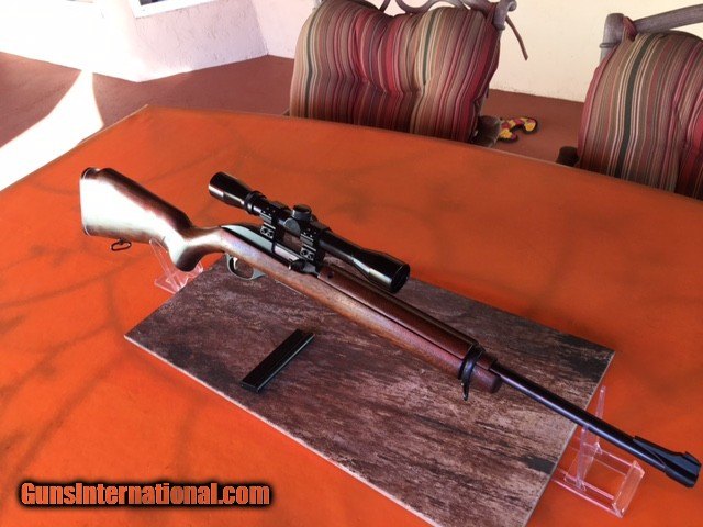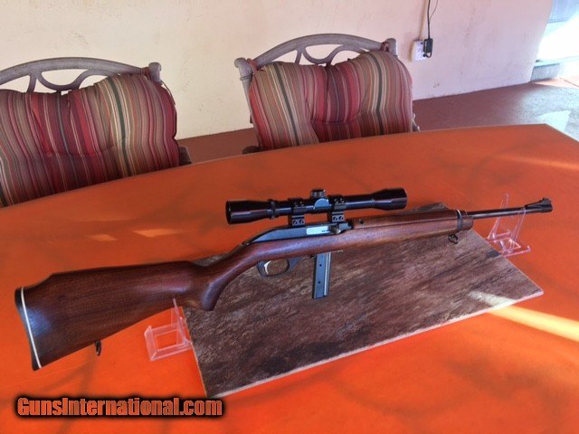 Description: Marlin Model 989-M2 - Semi-Auto Carbine Style .22 Lr . Rifle - Styled after the US 30M1- Carbine - Walnut carbine style stock with hand guard, barrel band and sling swivels. New 15 round clip magazine . Wgt. 5 lbs. 18 in. barrel and receiver grooved for scope. Ramp style front sight with blade. Includes a Simmons 2.5 x 32 Scope w/ mtgs. in excellent condition with clear lenses. Bore is clean and bright. Barrel and receiver are retaining approx. 90 % to 95% bluing. Butt plate and white spacer are in great shape. Stock and forend are in very good condition. The clip style magazine configuration is difficult to find especially in this condition. Manufactured from 1966 to 1979 . Collector quality. All of our rifles have been cleaned and lubricated. We can ship to C&R or to your FFL dealer a flat rate of $50.00 to the lower 48 states. SOLD Curio/Relic: Yes Rifle Caliber: .22 Long Rifle Manufacturer: Marlin Model: 989-M2 Serial Number: NSN Barrel Length: 18 IN. Condition: Excellent Metal Condition: Very Good Wood Condition: Very Good Bore Condition: Clean /Bright Weight: 5 Sights: Ramp / Blade |