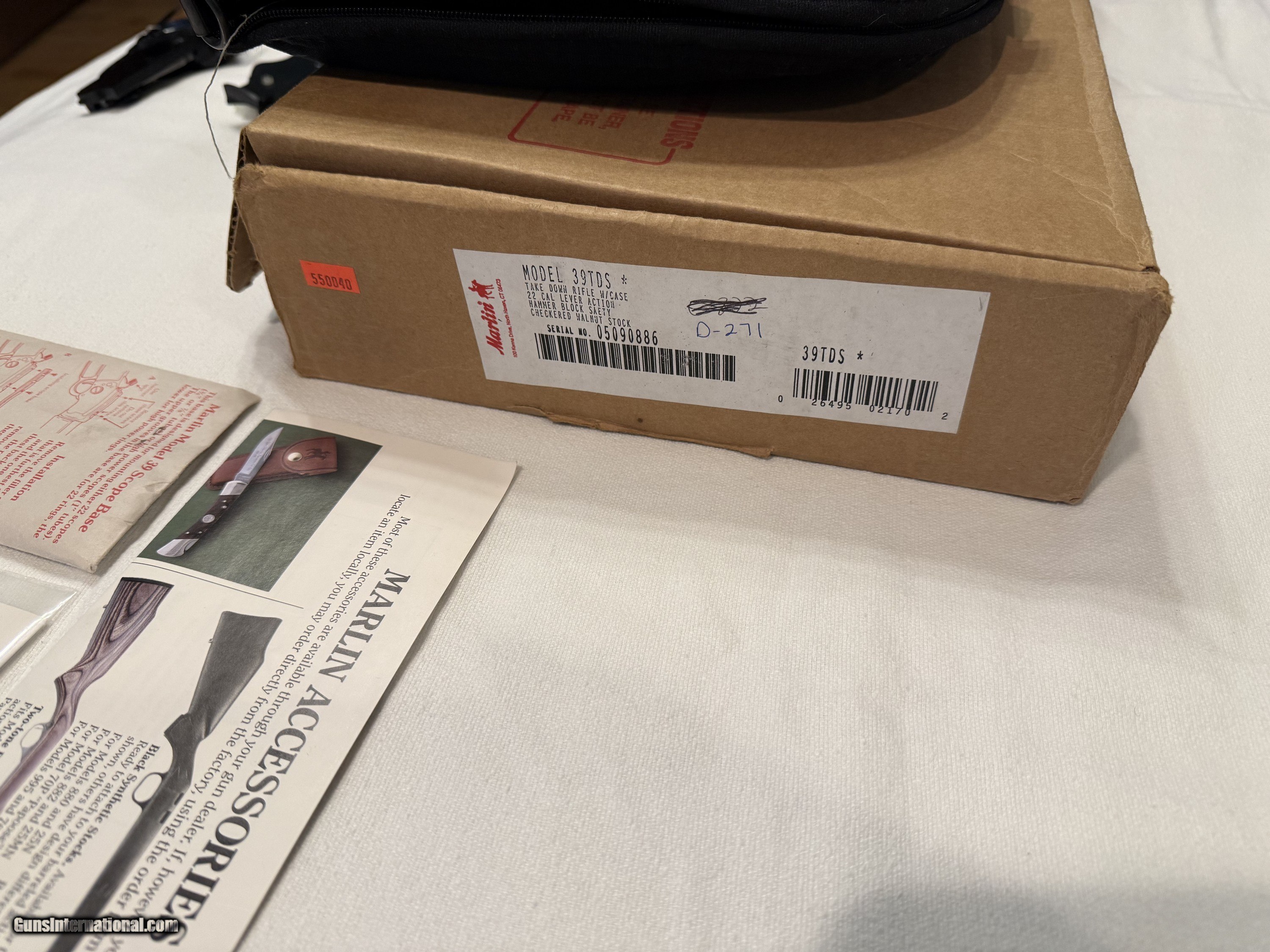 Description: For Sale Marlin TDS .22 caliber rifle. This gun is in pristine condition. This comes from a long time personal collection. Included in this sale is the original box gun came in, Marlin soft gun case, owners manual with scope mounting hardware, please see pictures for included hardware and paperwork. This gun is new in box and unfired. This gun is considered a collector grade firearm. Note: one very small blemish in top of reciever. $75.00 shipping to lower 48 states. Payment Certified funds or Postal money order Rifle Caliber: .22 Long Rifle Price: $2,400.00 Contact Seller |