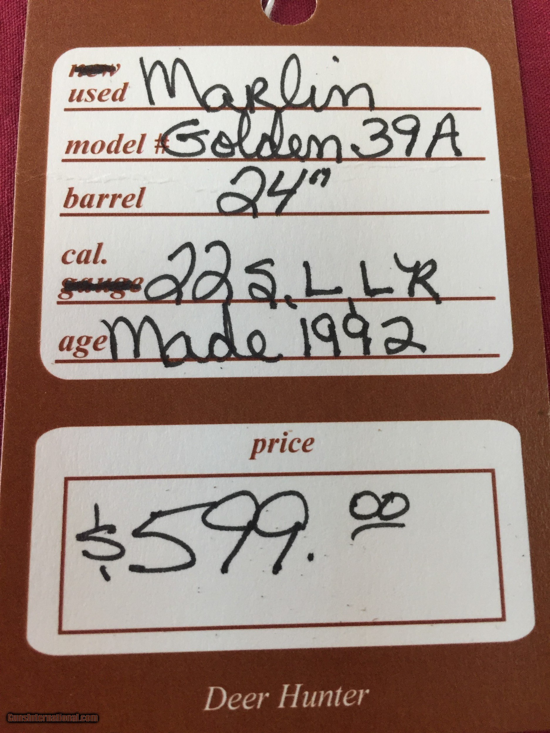 Description: SOLD FOR SALE Marlin Golden 39A, Takedown Rifle, 22 Short, Long, & Long Rifle, 24" Barrel, Beautiful Bore CIRCA 1992 We Accept VISA, M/C, DISCOVER Shipping to Lower 48 is Handguns = $30.00 (US PRIORITY MAIL) Long guns = $40.00 (UPS GROUND) SOLD |