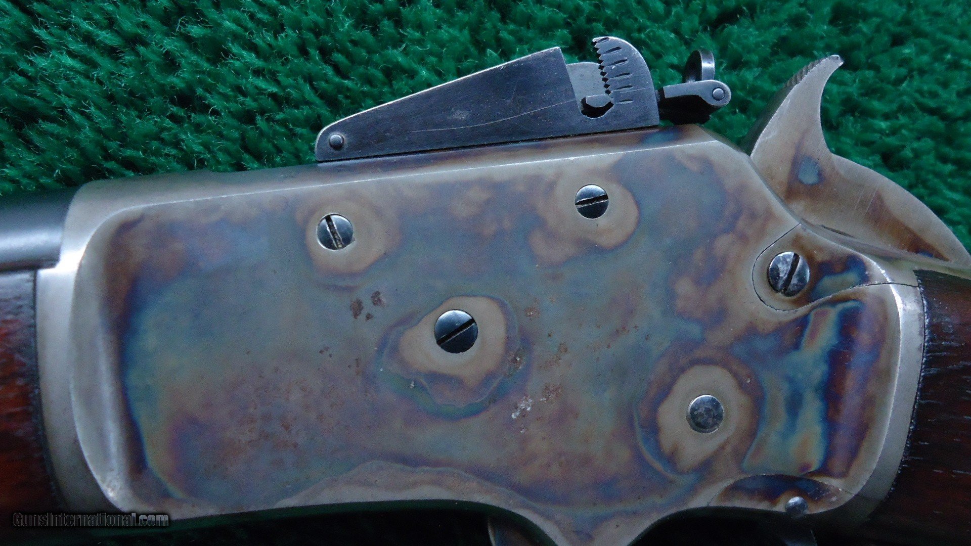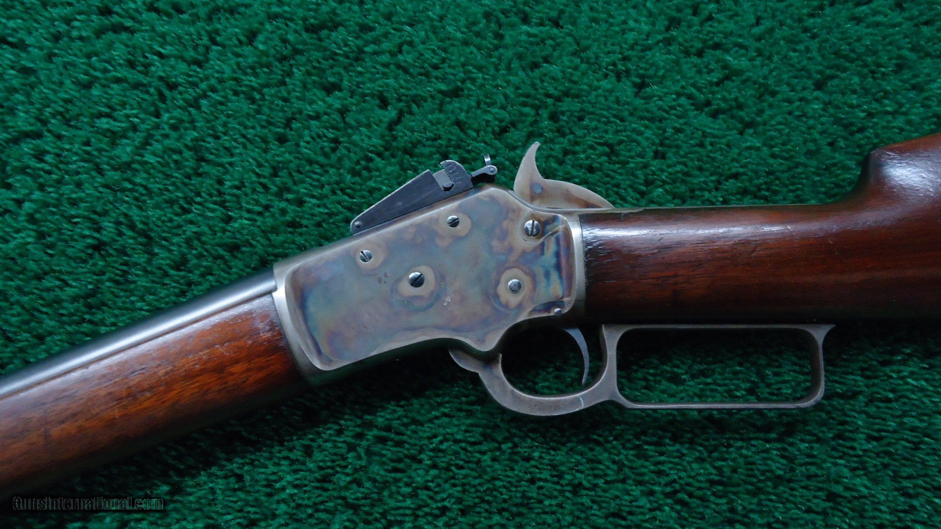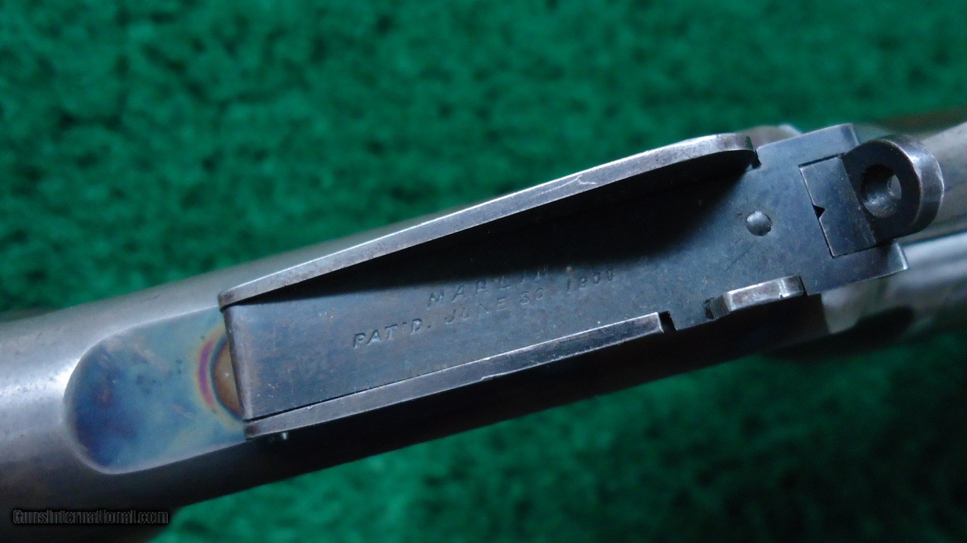 Description: 26 inch round barrel chambered in 22 S,L or LR caliber. Very good shiny bore. Smooth action. Beautiful gun with all case color remaining. Dimmed some on the right side. Original barrel and mag tube blue is exceptional at about 95%+. Crisp markings. Rare Marlin receiver mounted sight. Marble No. 5 blade front and a blank in the rear dovetail. Wood matches in condition. Hard rubber butt plate. Takedown frame. The 97 Marlin was an excellent lever action 22 and this is a very good example. These were made from 1897-1922. Leroy Merz Antique Firearms specializes in antique and vintage Winchesters and other fine American firearms. Since 1965 Mr. Merz has taken part in the world of firearms and has been a contributor to many well known reference books. We have hundreds of additional guns in every price range at our home online. Search for Merz Antiques in google. SOLD Curio/Relic: Yes Rifle Caliber: .22 Long Rifle |