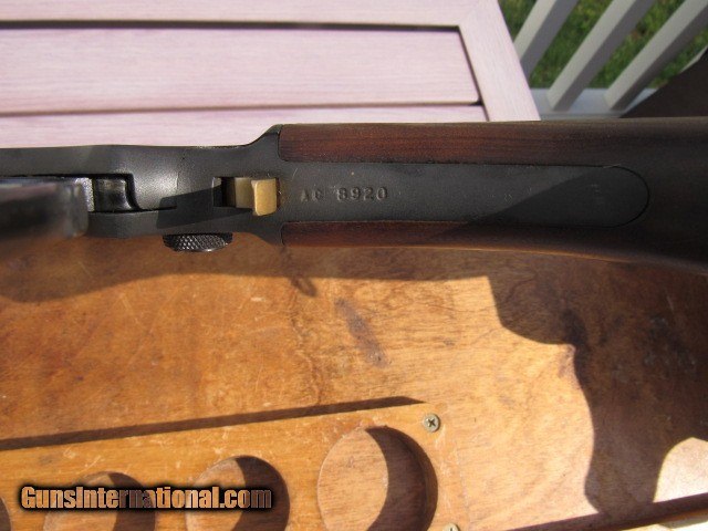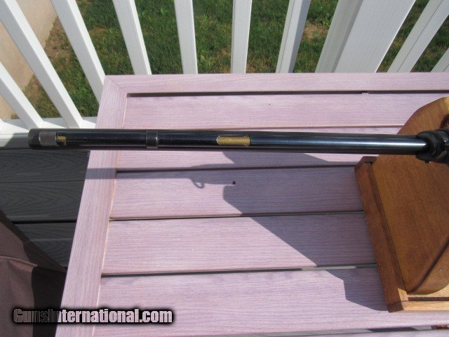 Description: Marlin Model Golden 39-A 22 caliber rimfire rifle that will shoot short, long and long rifle cartridges, 24" round barrel, full magazine, take down frame, blued finish, walnut stocks, pistol grip, shotgun butt, Marlin black plastic butt plate, black plastic grip cap, ramped front sight with hood, open rear sight, plain Golden trigger, receiver factory drilled and tapped for several types of peep sights and scope (scope mounting holes are missing the plug screws), correct white line spacers, correct factory-installed sling swivels, serial number AC8920, made in 1967. Of course the barrel is "JM" marked. CONDITION: Grades NRA Modern Fine, having just minor use marks to the stocks, no splits or cracks, no extra holes, never sanded or refinished, with some nice "extra grain" on the right side of the fore arm, mint bore, tight and fully functioning take down feature, 93% original bright factory blue on all metal surfaces, properly-functioning half cock safety, correct front sight with original hood and Marble's style full buckhorn rear sight. **NOTE broken screw in fore arm cap was carefully removed and replaced after the pictures were taken. ** Just an overall nice, early Marlin Golden 39A rifle to have fun shooting and add to your collection. TERMS: Hawaii and Alaska buyers please contact me for a shipping quote, otherwise shipping to the Continental US States will be FREE. No international sales. We do ship to California! Must ship to FFL or C&R license holder. Sales to residents of New York State require an FFL only, no exceptions. Please know what is legal for your state. 3 day non-firing inspection. Buyer pays return shipping. Payment by bank check, personal check or money order. All major credit cards accepted with 4% convenience fee added. Ships by UPS Ground with tracking. Always interested in Civil War items, as well as used long guns and used antique handguns so please contact me if you have anything for sale or trade. 315.251.4799 with questions or concerns. Please keep in mind that I work a part time job afternoons during the week and may not be able to immediately respond to your text, phone, or email message. Thanks for looking! Reasonable offers are entertained and welcomed. SOLD Curio/Relic: Yes Rifle Caliber: .22 Long Rifle Manufacturer: Marlin Model: Golden 39-A Serial Number: AC8920 Barrel Length: 24" round Condition: Excellent Metal Condition: Excellent Wood Condition: Excellent Bore Condition: Mint Action: Lever Triggers: Standard/plain Stock: Walnut Sights: Standard Manufacture Date: 1967 Item Location: New York |