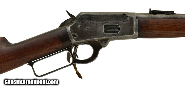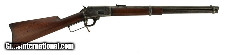 Description: Marlin 1894 .44-40 caliber carbine. Saddle ring carbine made approximately 1901. Bore has strong rifling with pitting. Action works perfectly. Metal has a gray patina. Wood is very good as cleaned, no cracks. A desirable .44-40 saddle ring carbine.