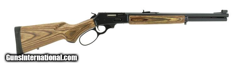 Description: Marlin 1895 GBL .45-70 caliber rifle. 18½” Barrel, laminated stock, big loop, blue finish and Semi buckhorn sights. New.