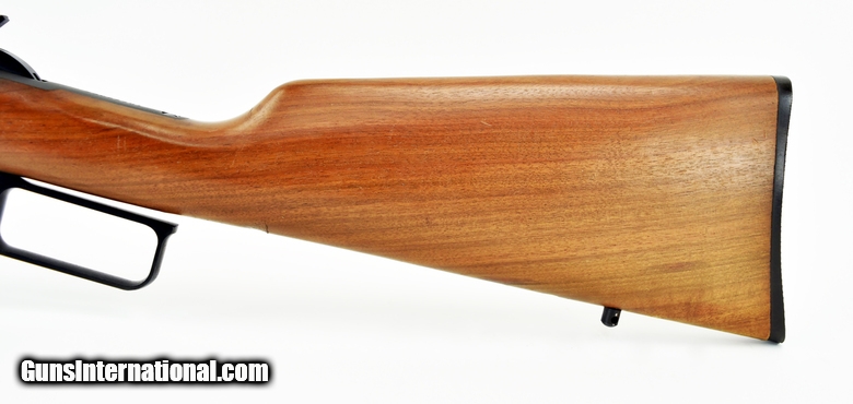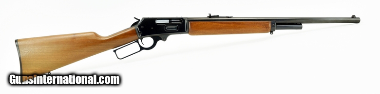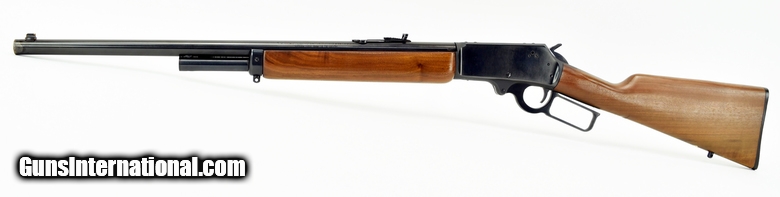 Description: Marlin Firearms 1895 .45-70 caliber rifle. Early model with 22” barrel, 2/3 mag tube and straight stock. Has no safety button in excellent condition.