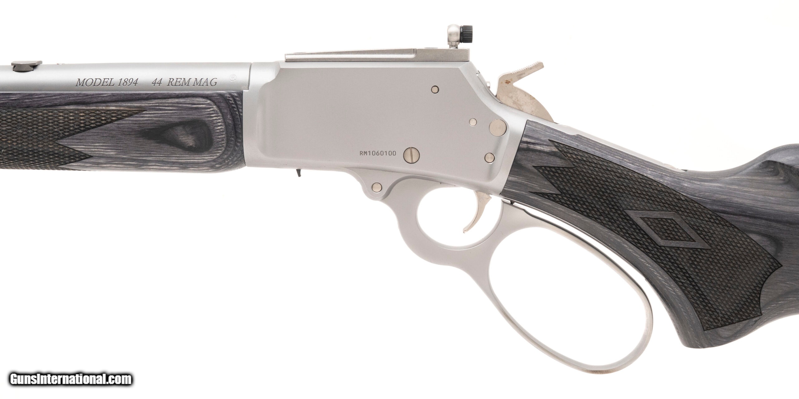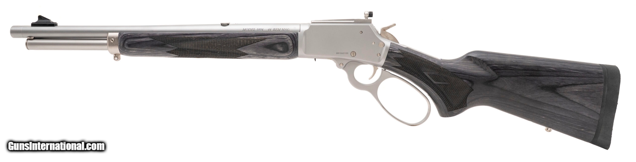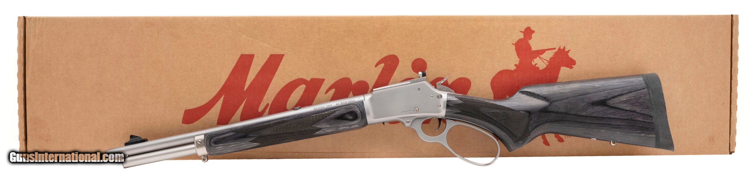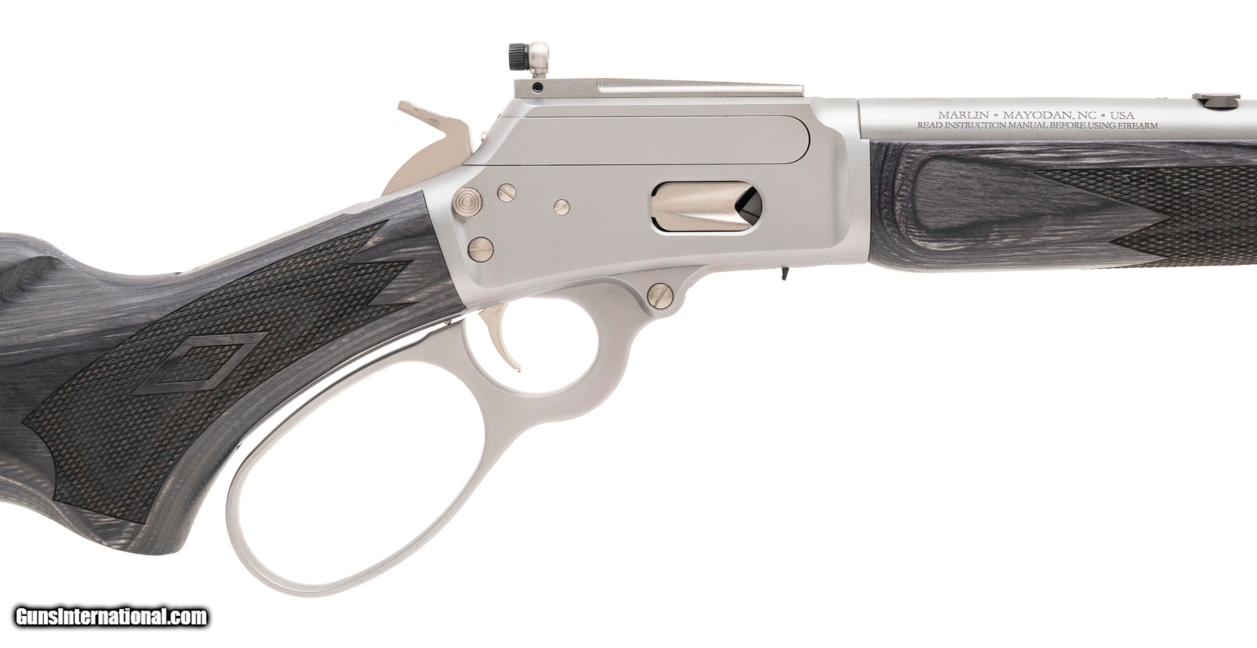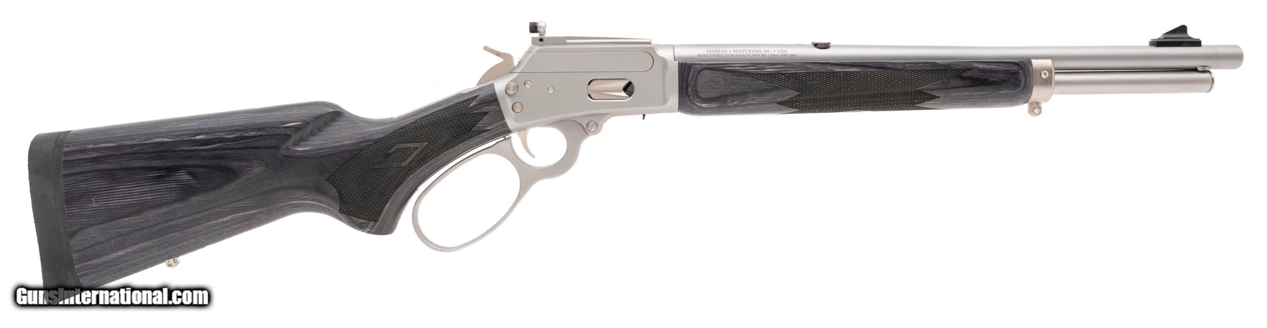 Description: "Lever Action Rifle with a 16.10"" Threaded Barrel. Stainless Steel, Laminate Wood Stock, Skinner Bladed Front & Adjustable Rear Sights, and Cross Bolt Manual Safety. NEW. UPC: 736676704514 (STOCK PHOTO) SOLD |