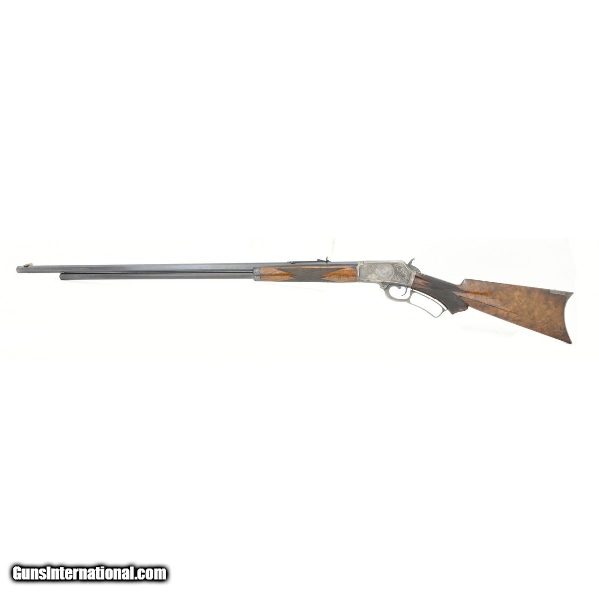 Description: " Factory engraved Marlin 1889 Deluxe .44-40 caliber rifle. Made in 1892. Has a rare 32" barrel in .44-40 caliber. Barrel has beautiful blue that rates around 97%. Frame has 50% case colors that have softened. Wood is excellent. Bore is excellent. Gun comes with a factory letter that confirms the stock, barrel length and caliber, but does not mention the factory engraving. This gun is clearly factory engraved, but it is just not mentioned in the records. Absolutely beautiful factory engraved Marlin 1889 Deluxe! SOLD Antique: Yes |