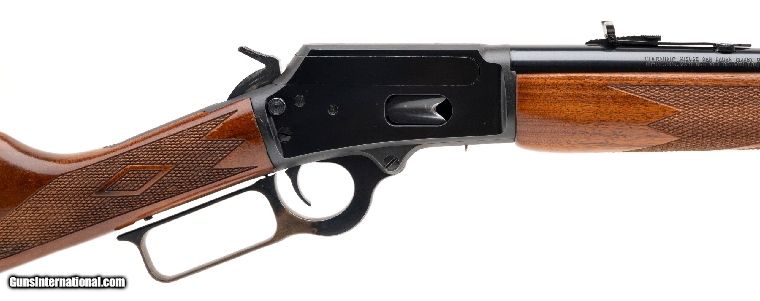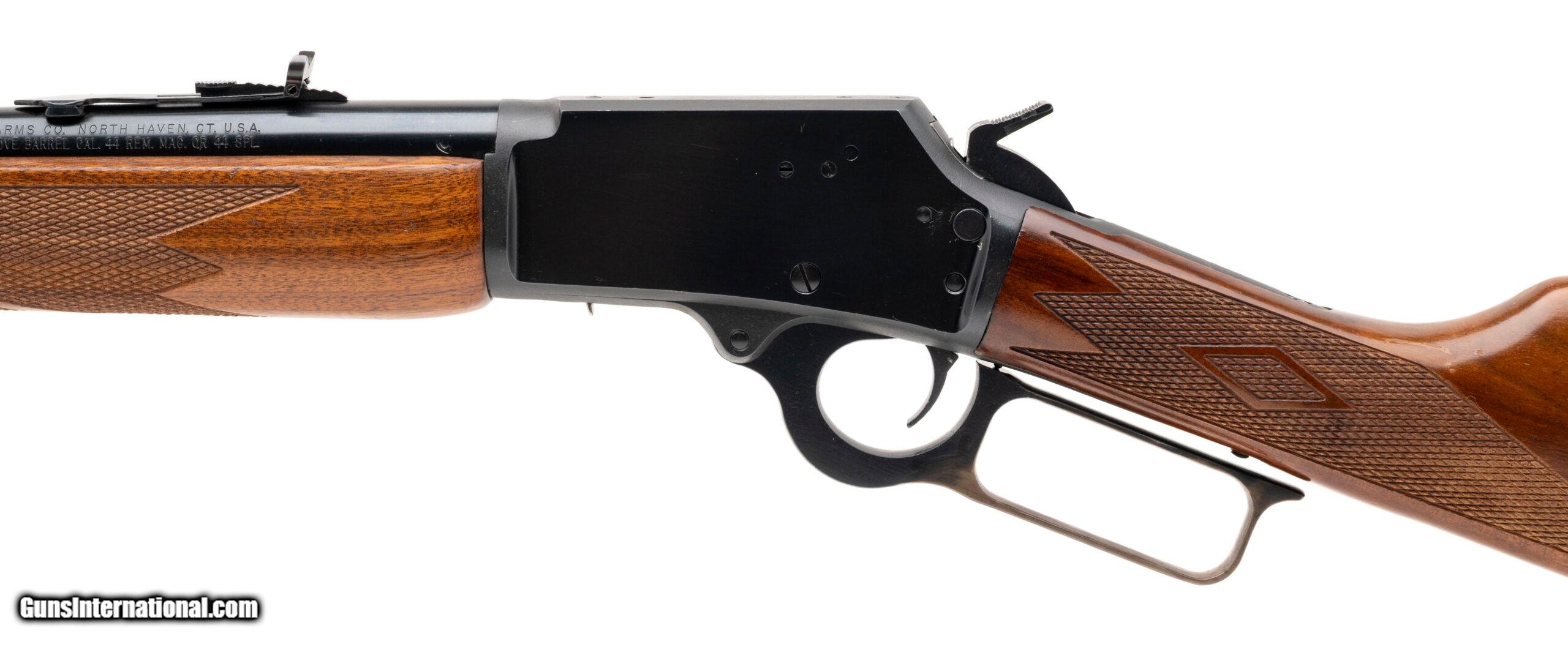 Description: "SN: 04090800. Modern production, .44 MAG./.44 SPL. with a 20"" micro-groove barrel. Bore is very good. JM stamped lever-action rifle with a beaded front sight, adjustable semi-buckhorn rear sight, blued finish, and checkered wood stock & forend. Finish shows minor handling marks & loss throughout. Stock shows minor marks. Overall condition is very good. Price: $1,095.00 Contact Seller |