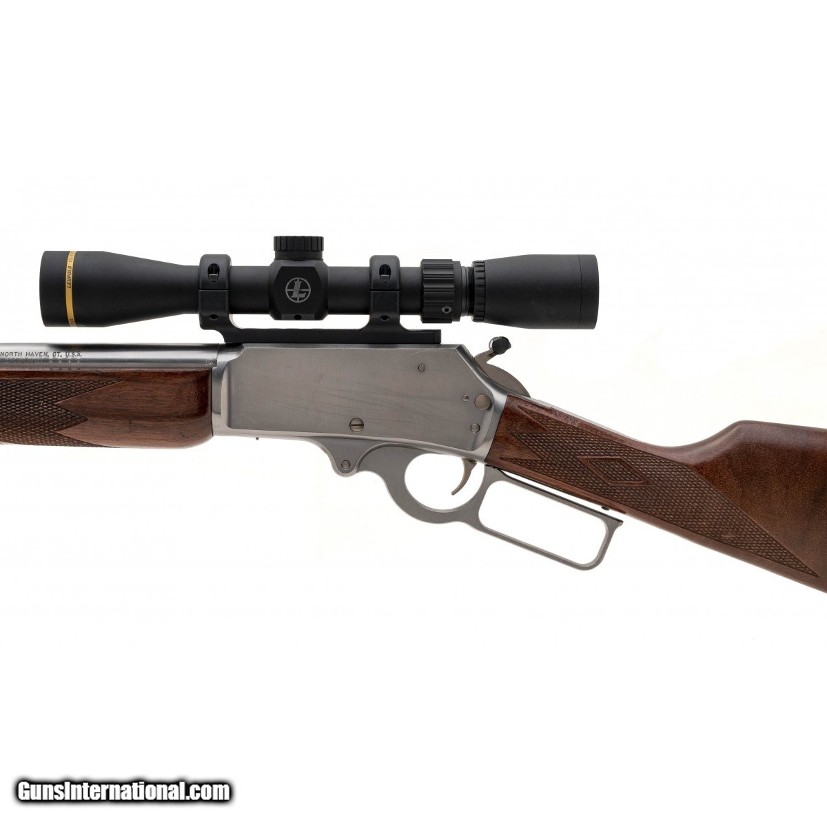 Description: " SN: 98200335A. Manufactured in 2002, .45-70 Govt with a 18.5"" barrel. JM Marked stainless lever gun with hooded front sight, checkered walnut stock and forend with LOP of approximately 13.25"". Overall excellent condition. Comes with Leupold VX Freedom 2-7x33mm scope. (Consignment) SOLD |