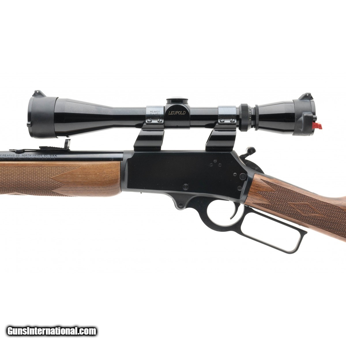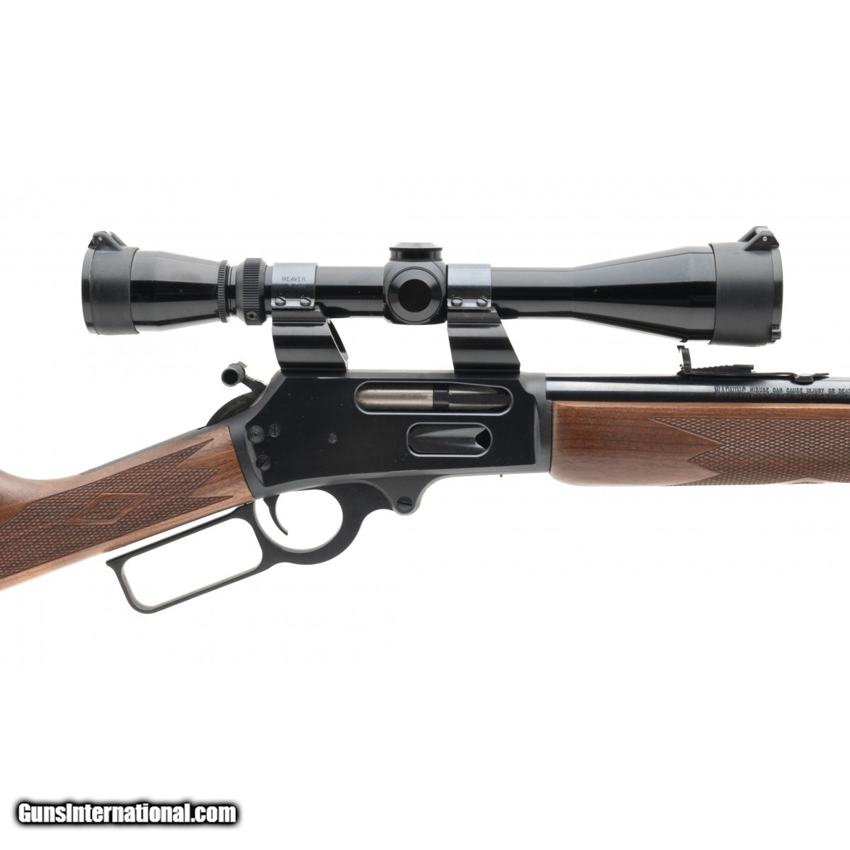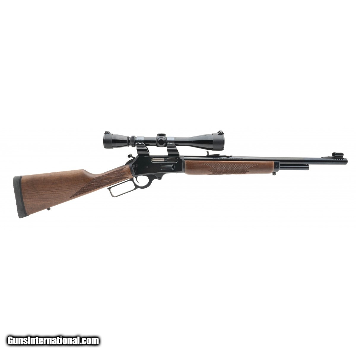 Description: " SN :99006281. Modern production. Chambered in .450 Marlin with a 18.5"" barrel, bore is excellent. Lever action rifle with blued finish, ported barrel, hammer extension, front hood bead sights and checkered wood furniture. Overall excellent condition. Comes with Leupold 3-9x40mm riflescope. (Consignment) SOLD |
