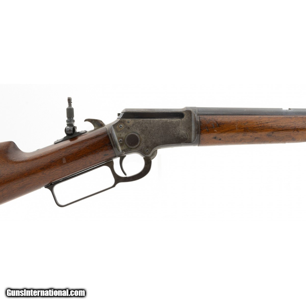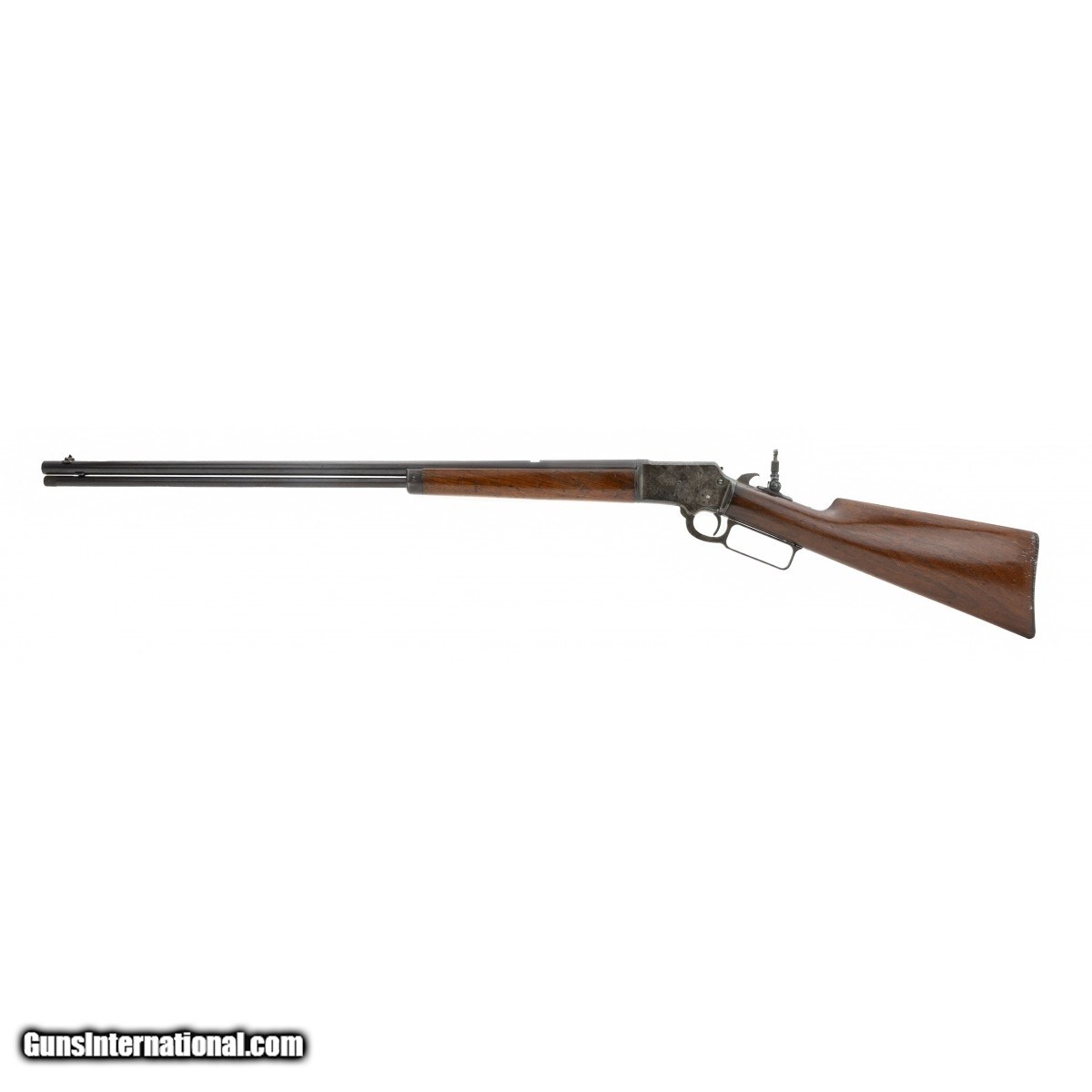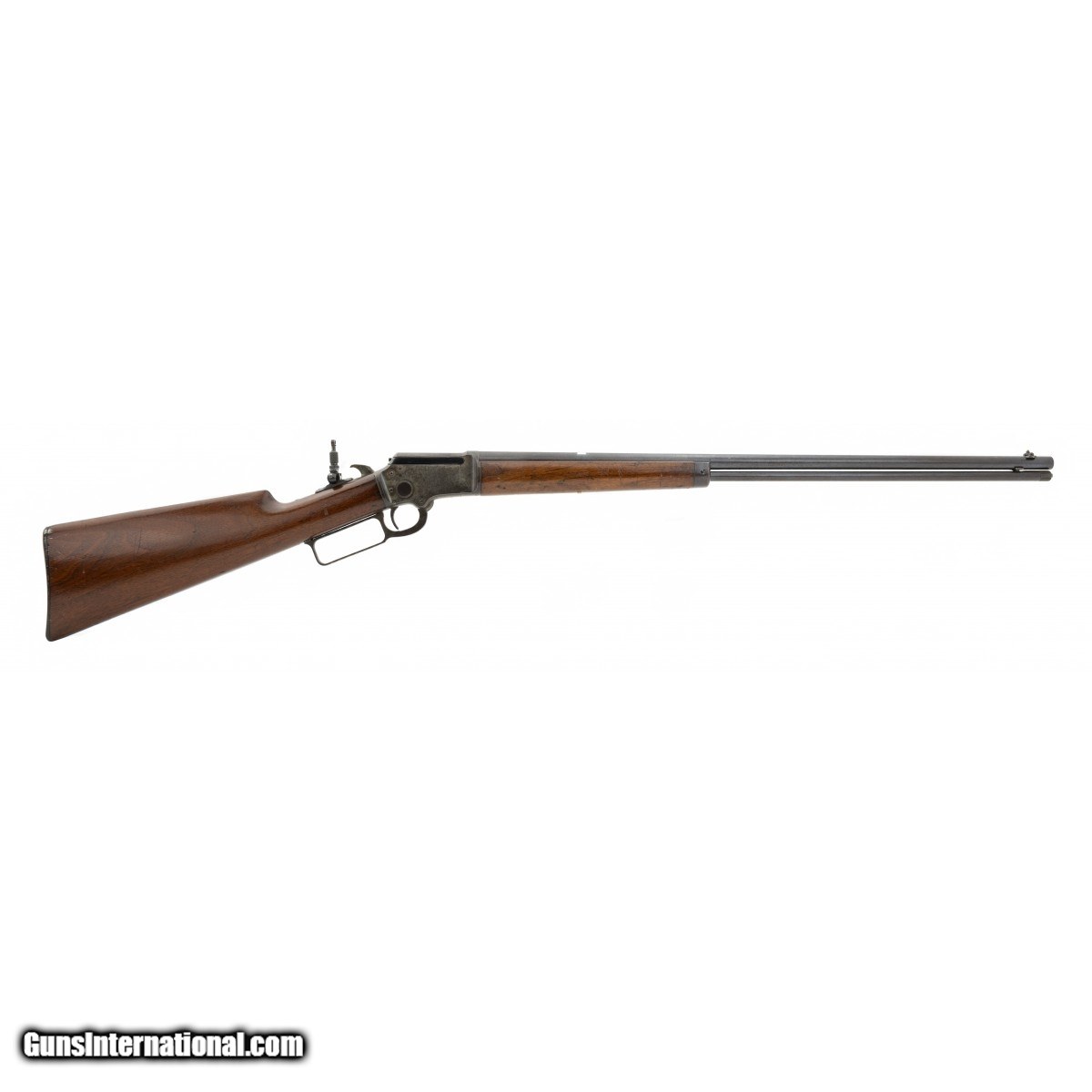 Description: "Made in 1899. 22 RF with a 24" barrel. The barrel of this gun has 95% of the original blue toning into a patina. Case colors are in the protected areas. Wood is very good. Action works well. Bore is excellent. This gun has a flip up tang sight. SOLD |