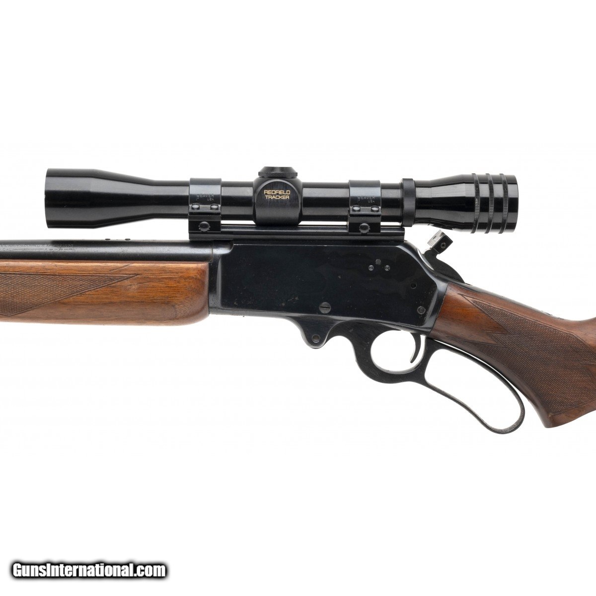 SN: E40322. Lever-action rifle made by Marlin in 1948. 24"" barrel chambered for .30-30. 13.5"" length of pull. Great condition overall with some cleaned surface rust on the metal. Wood is has a handling mark under the grip checkering on the left side, plus smaller marks on the fore-end. Bore is bright with good rifling. Hammer is a Williams brand extended spur model with a groove ground into the middle, either for ergonomics or to accommodate a scope larger than the one currently fitted. Action functions correctly. Comes with mounted Redfield Tracker scope on a Weaver rail and a leather sling.