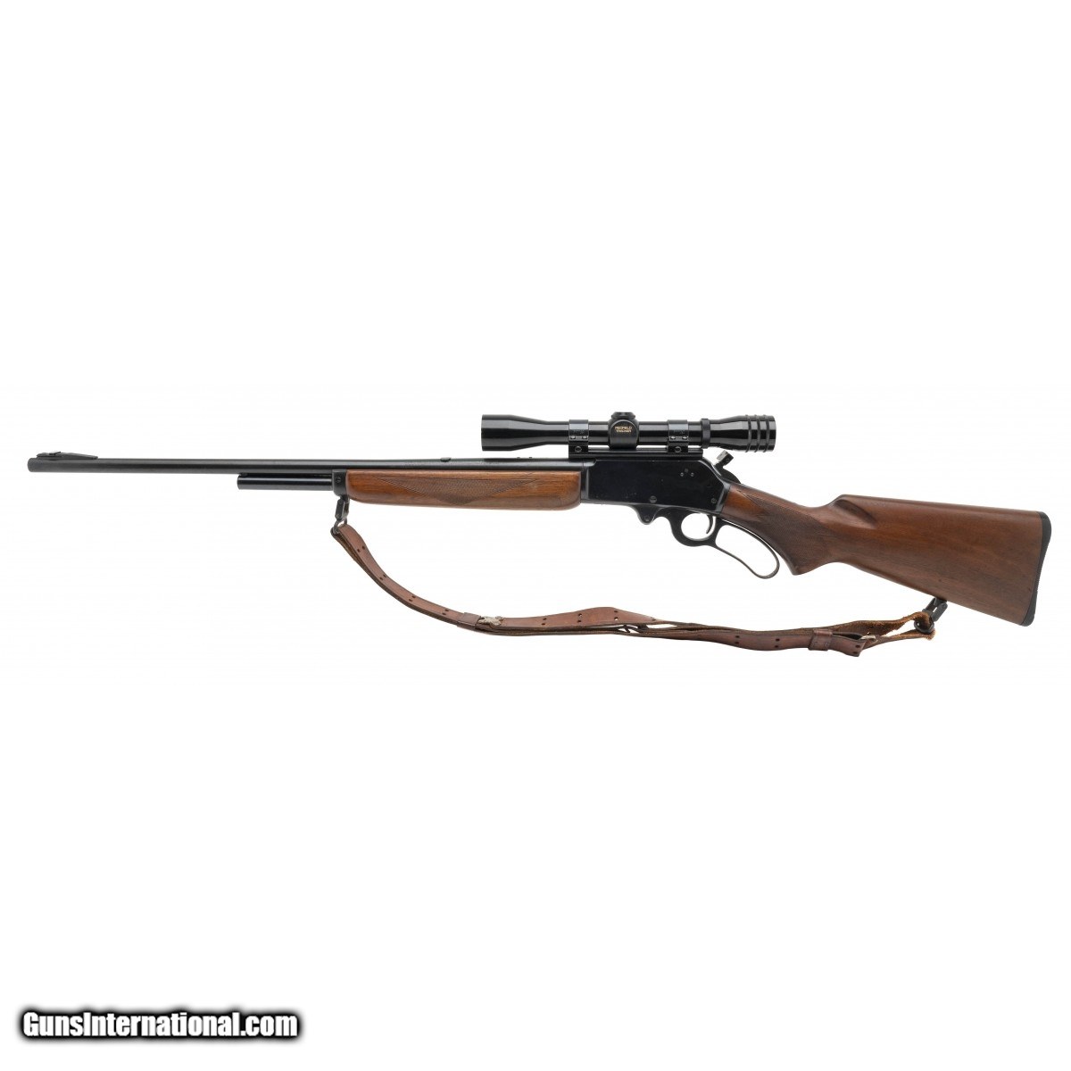 Description: " SN: E40322. Lever-action rifle made by Marlin in 1948. 24"" barrel chambered for .30-30. 13.5"" length of pull. Great condition overall with some cleaned surface rust on the metal. Wood is has a handling mark under the grip checkering on the left side, plus smaller marks on the fore-end. Bore is bright with good rifling. Hammer is a Williams brand extended spur model with a groove ground into the middle, either for ergonomics or to accommodate a scope larger than the one currently fitted. Action functions correctly. Comes with mounted Redfield Tracker scope on a Weaver rail and a leather sling. Austin location. SOLD |