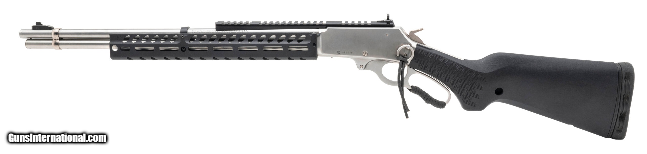 Description: "SN:MR21978F. Modern production. .30-30 win with a 20"" barrel. Bore is in excellent condition. Stainless steel lever action rifle. Finish and grips are in excellent. Rifle has Ranger point rail and XS Lever rail. Overall condition is excellent. SOLD |