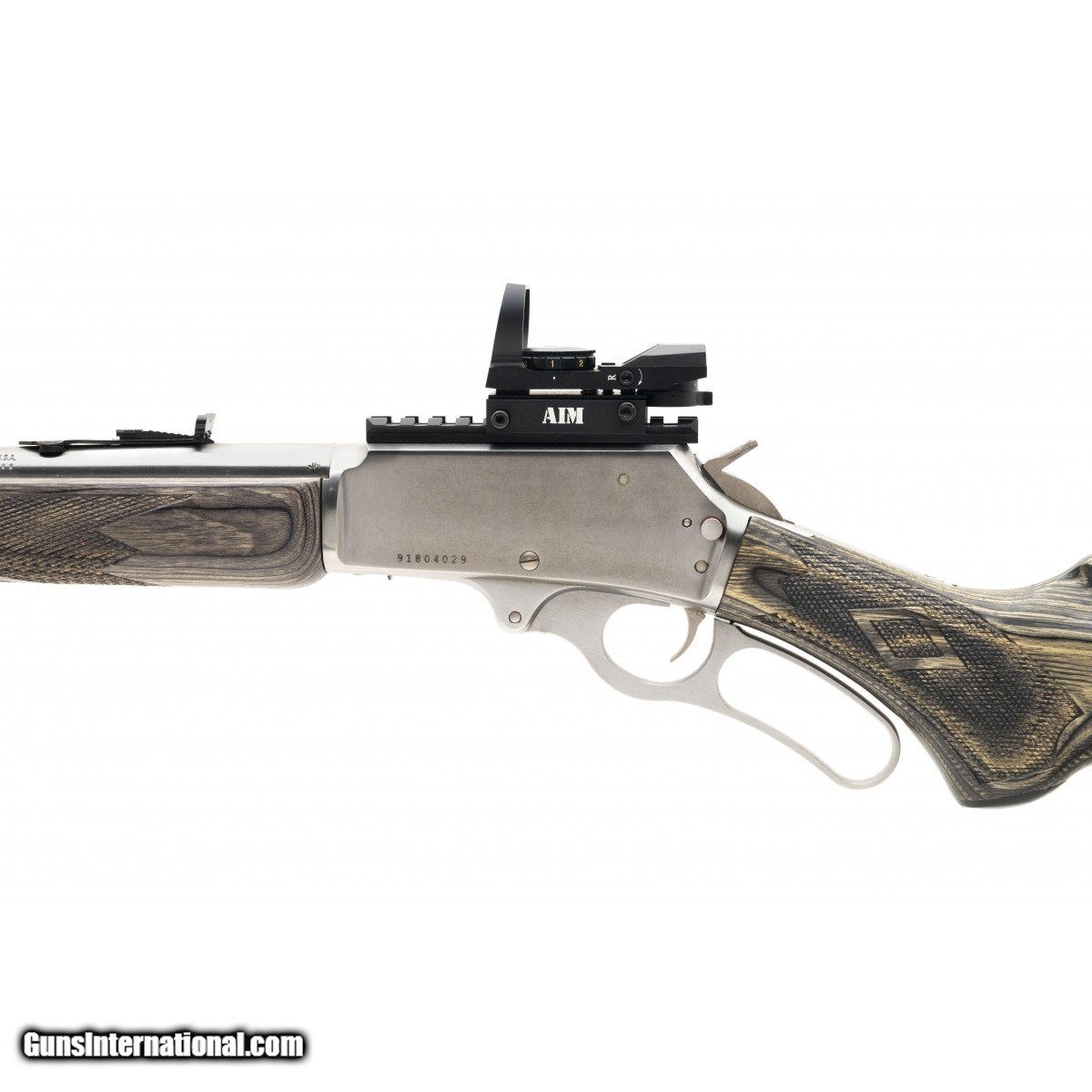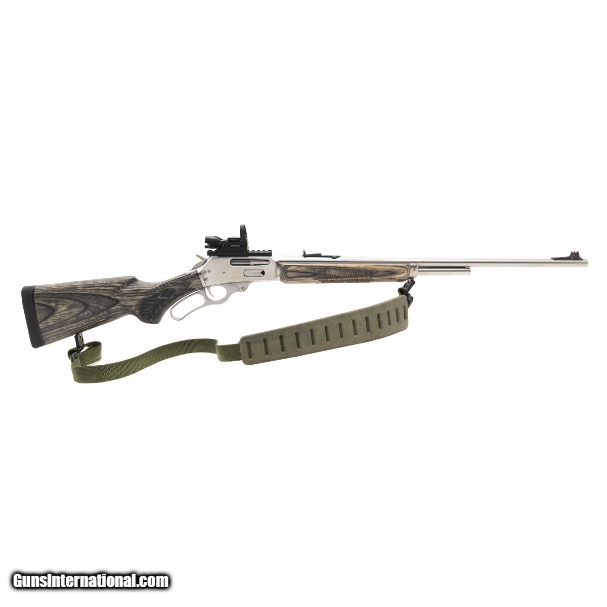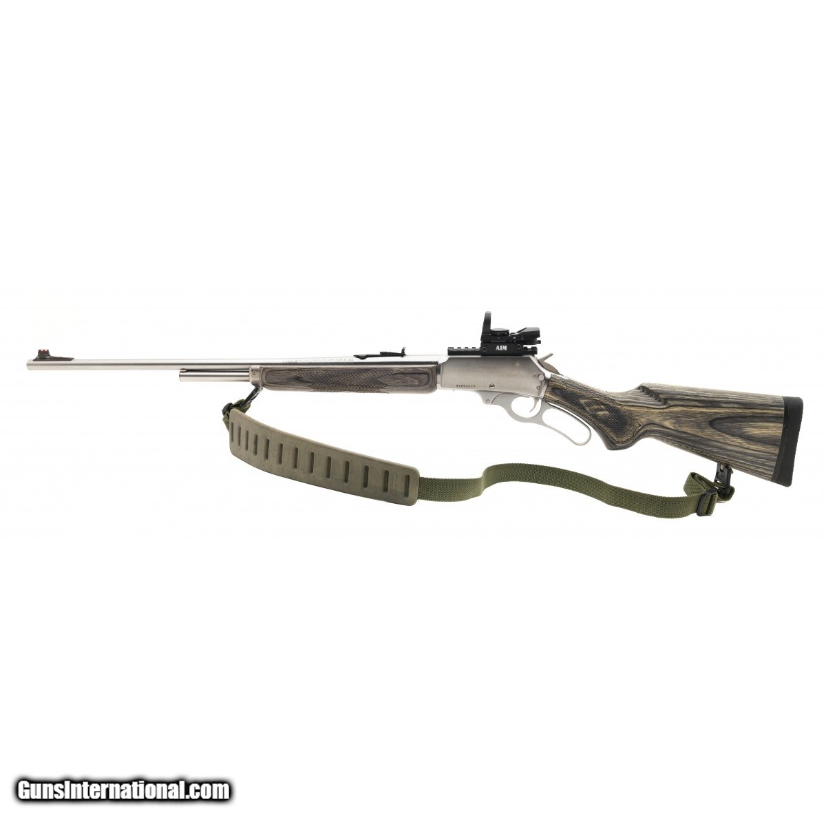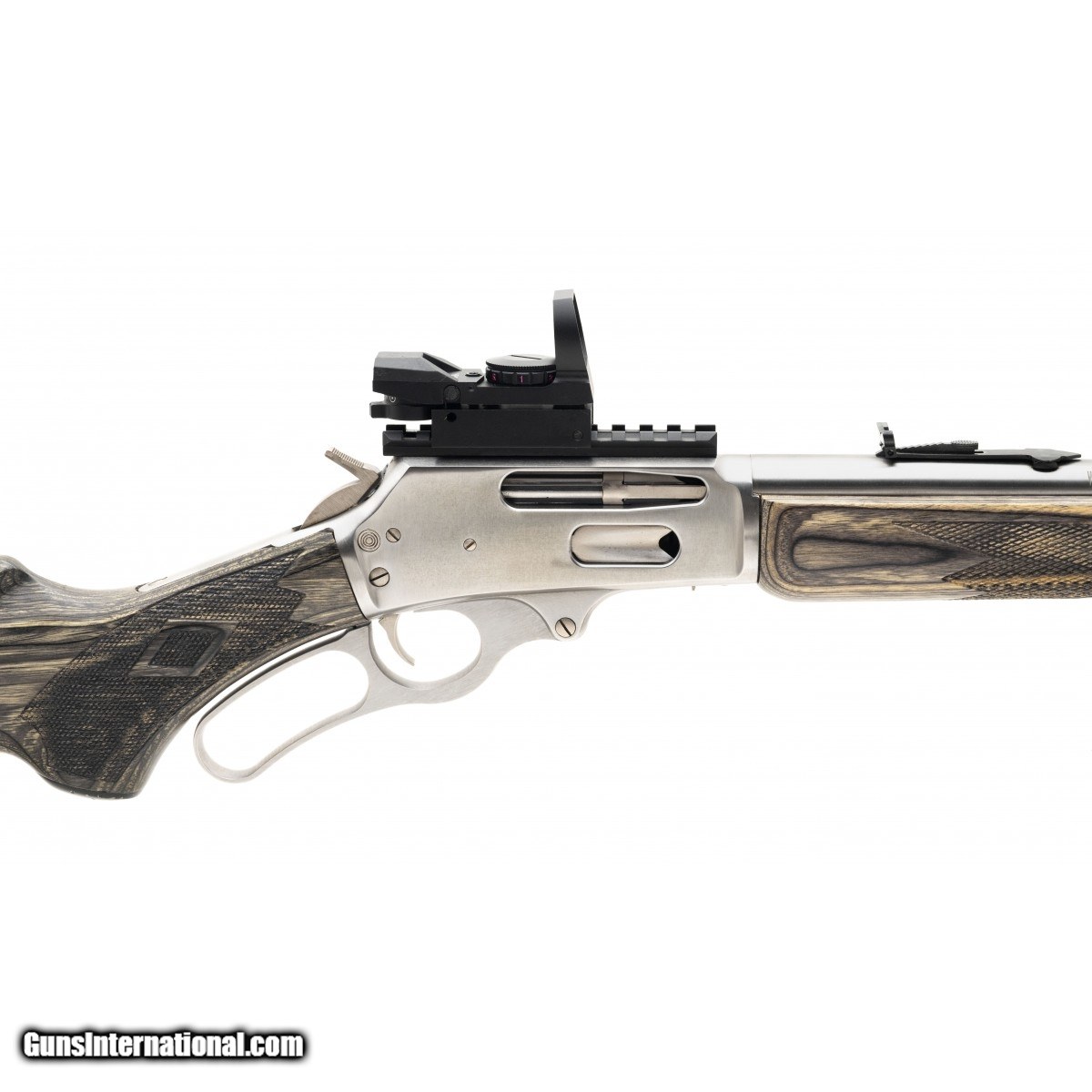 Desirable ""JM"" marked stainless lever action with 24"" barrel and laminated stock. Excellent condition overall with red dot sight.