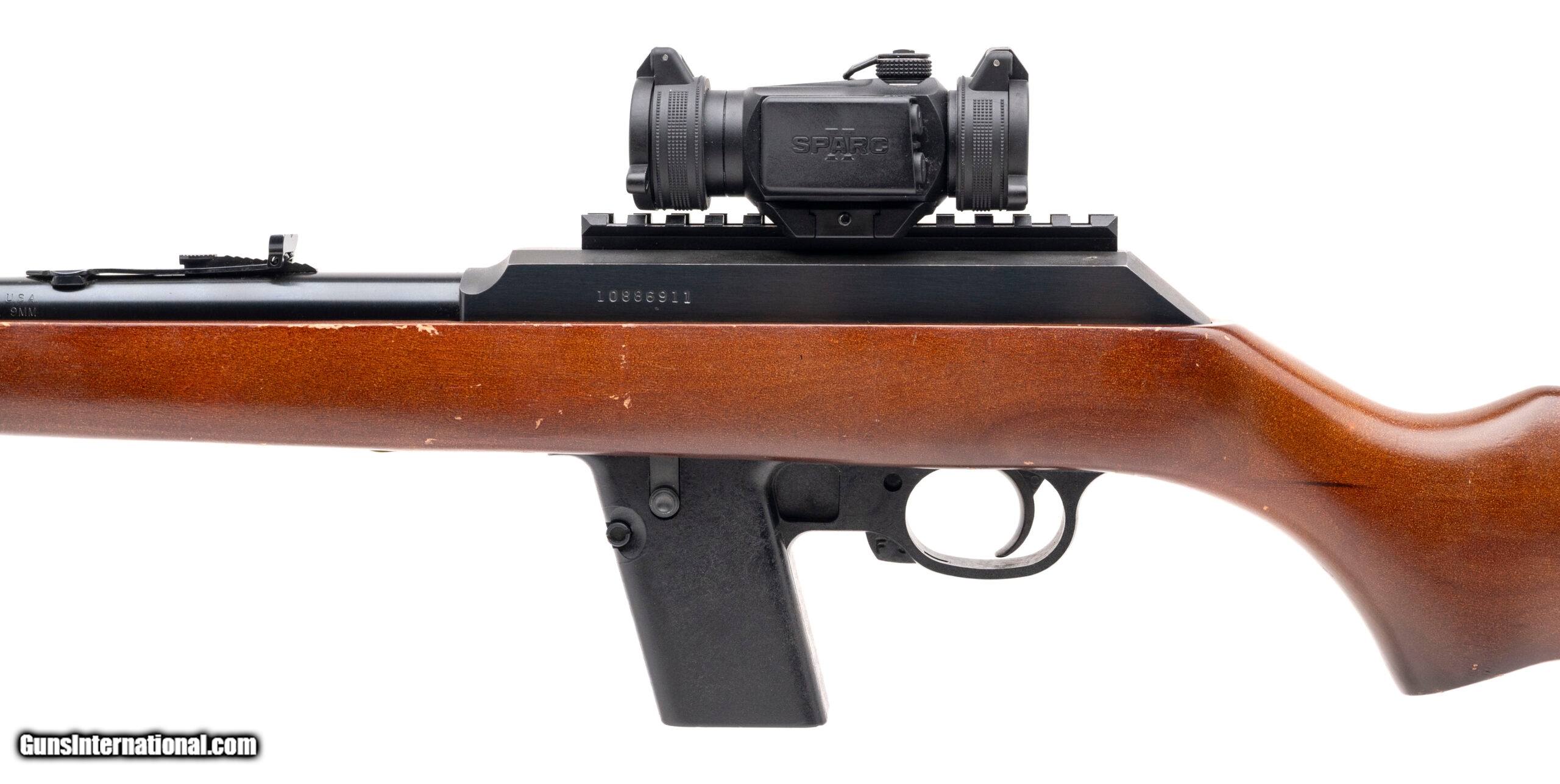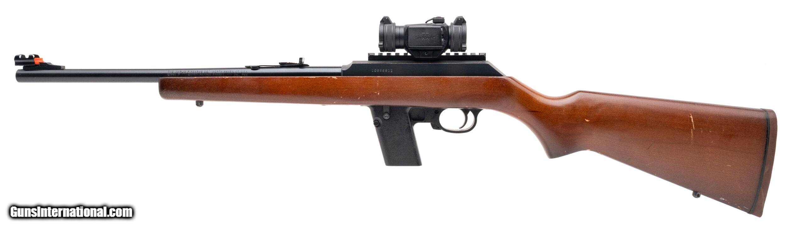 Description: "SN: 10886911 made circa 1980’s. 9mm magazine fed semi-auto rifle with a 16" round barrel with iron sights, a picatinny mount and Vortex SPARC red dot mounted. Wood stock with original recoil pad and 4 round detachable magazine. Some light handling marks but overall in very good condition. Price: $795.00 Contact Seller |