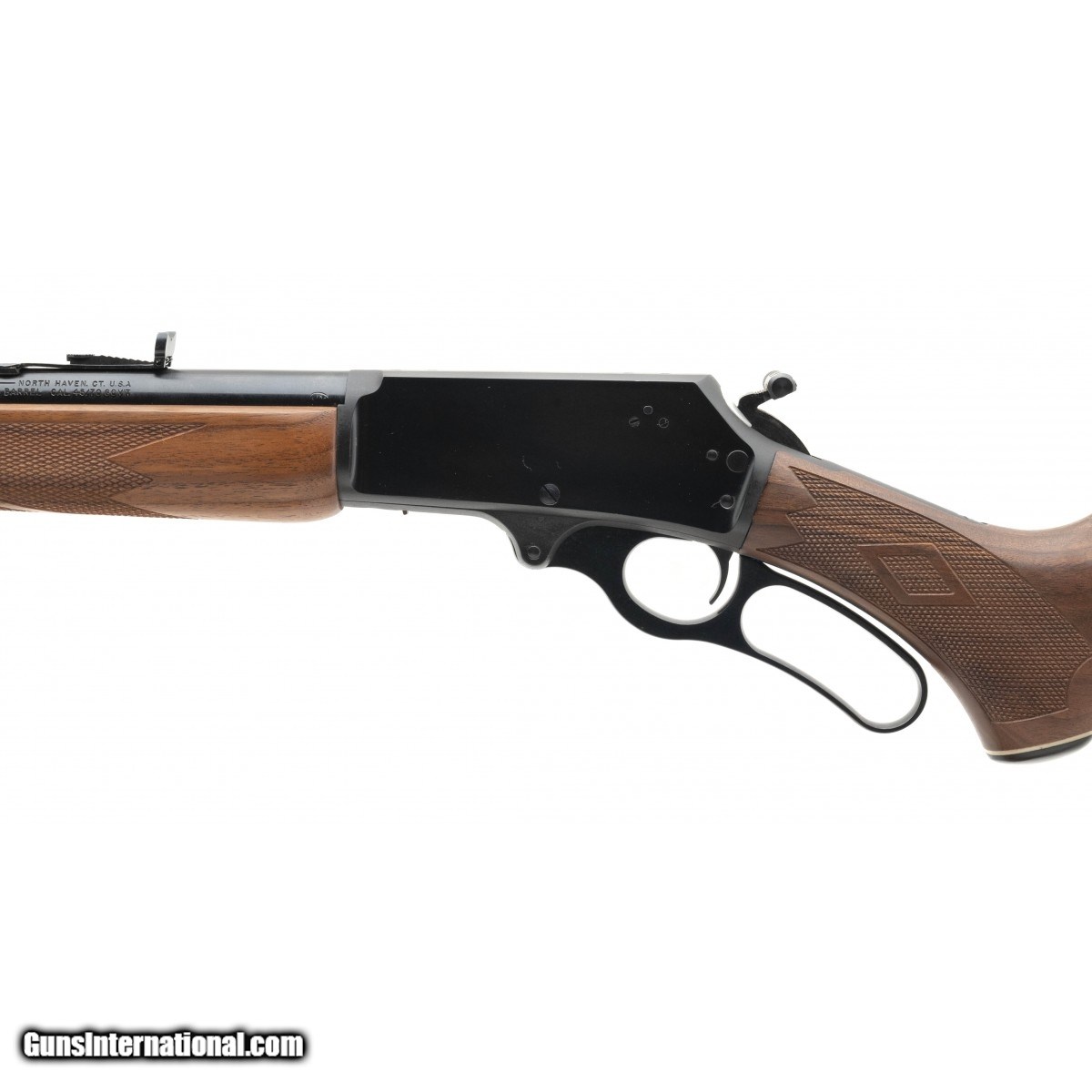 Description: " SN: 04085618. Made circa 1996, .45-70 Government with a 22"" barrel. Bore is in excellent condition. Lever-Action rifle with blued barrel, extended hammer and walnut stock. Overall excellent condition. SOLD |
