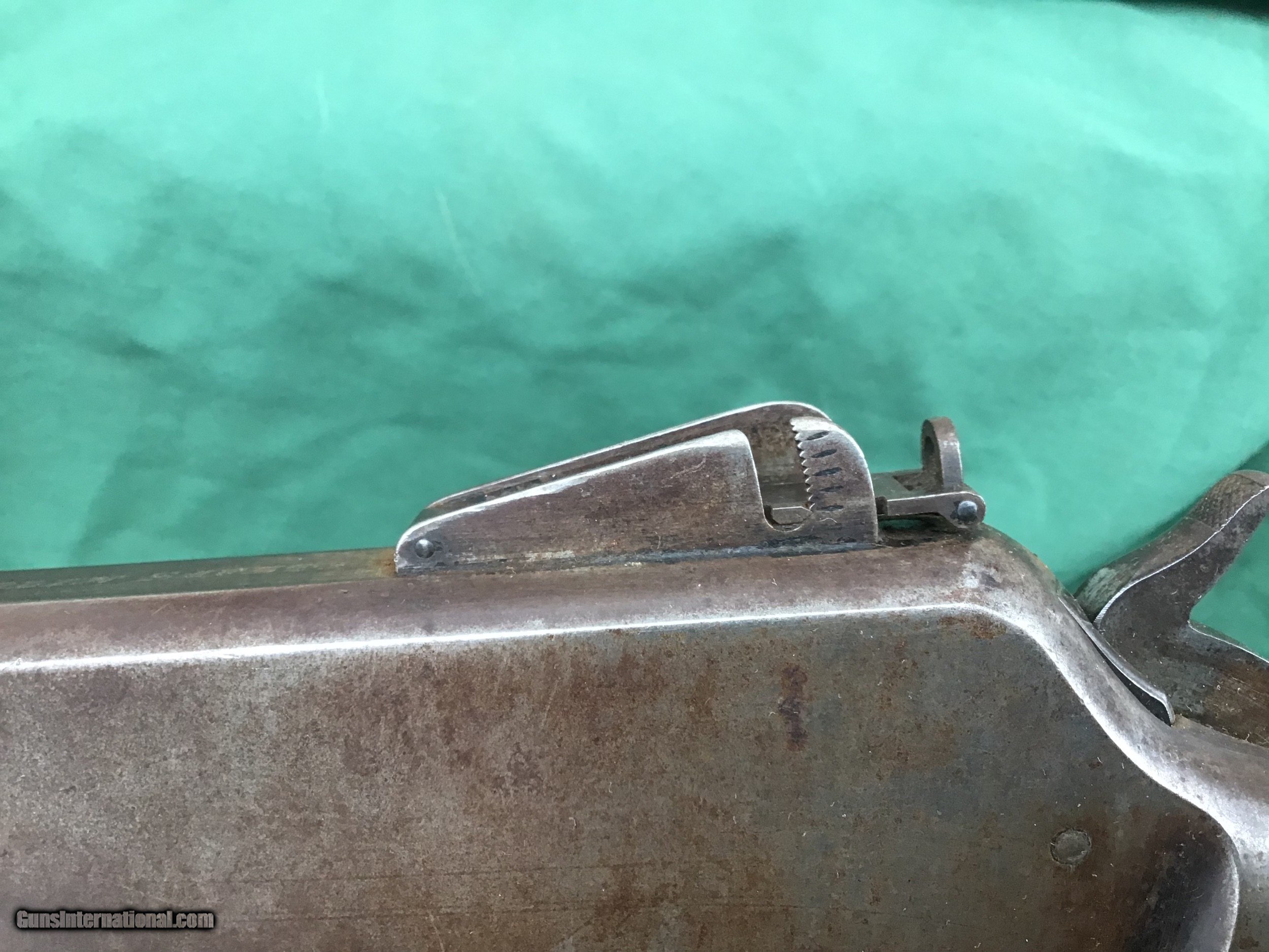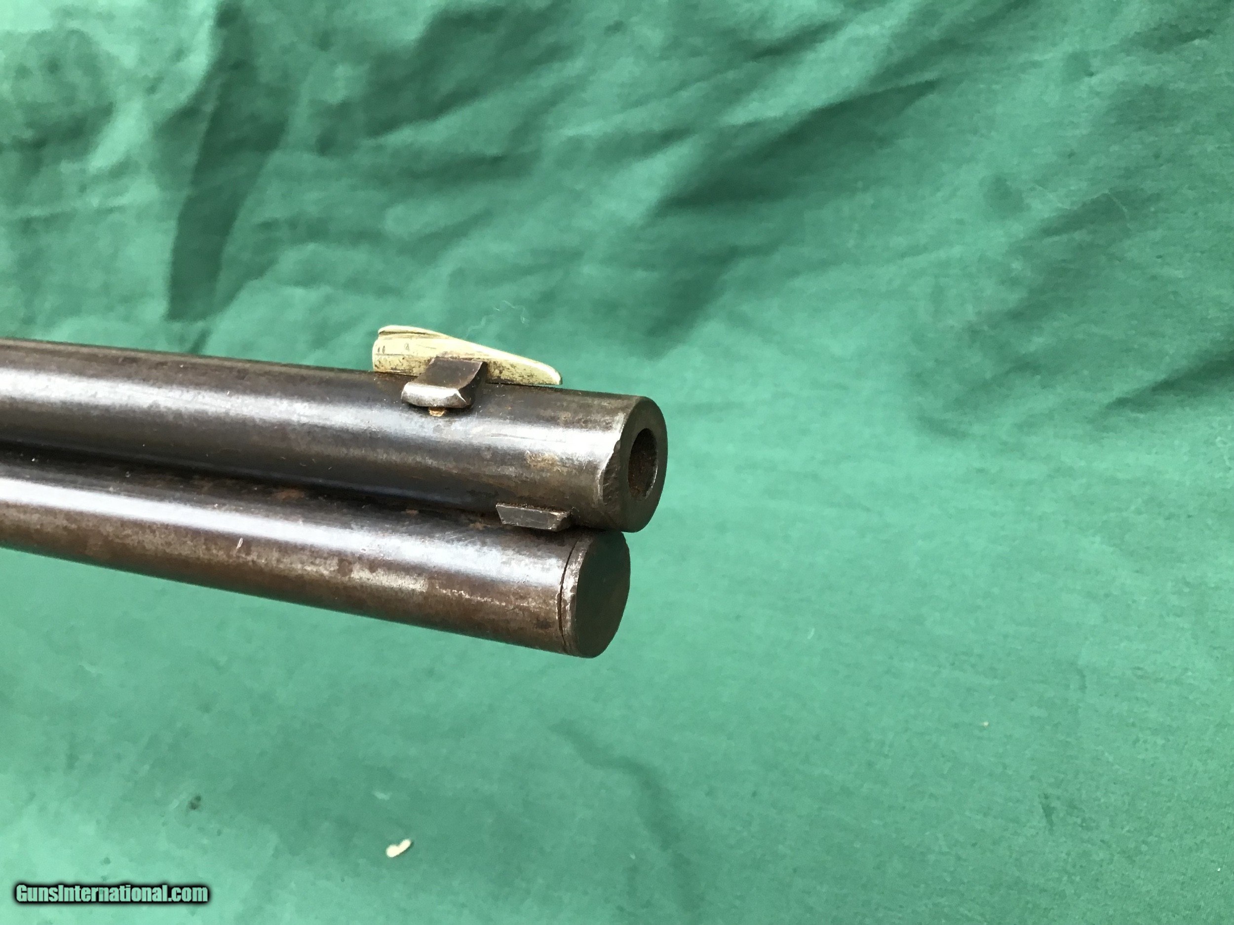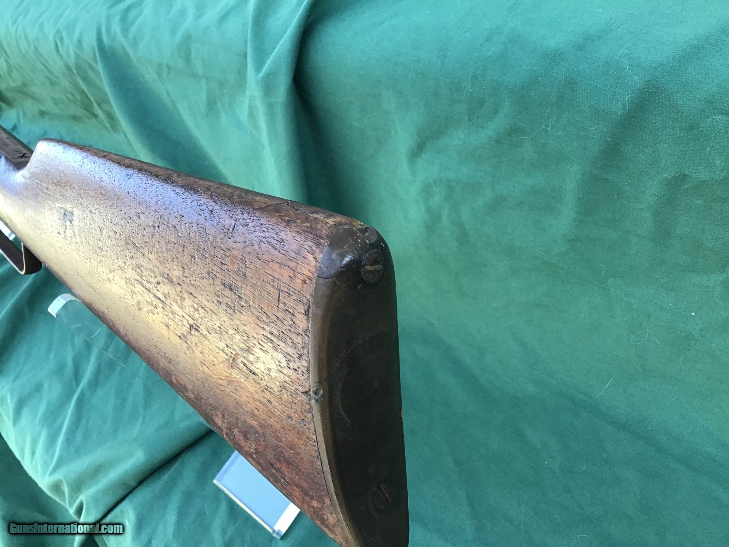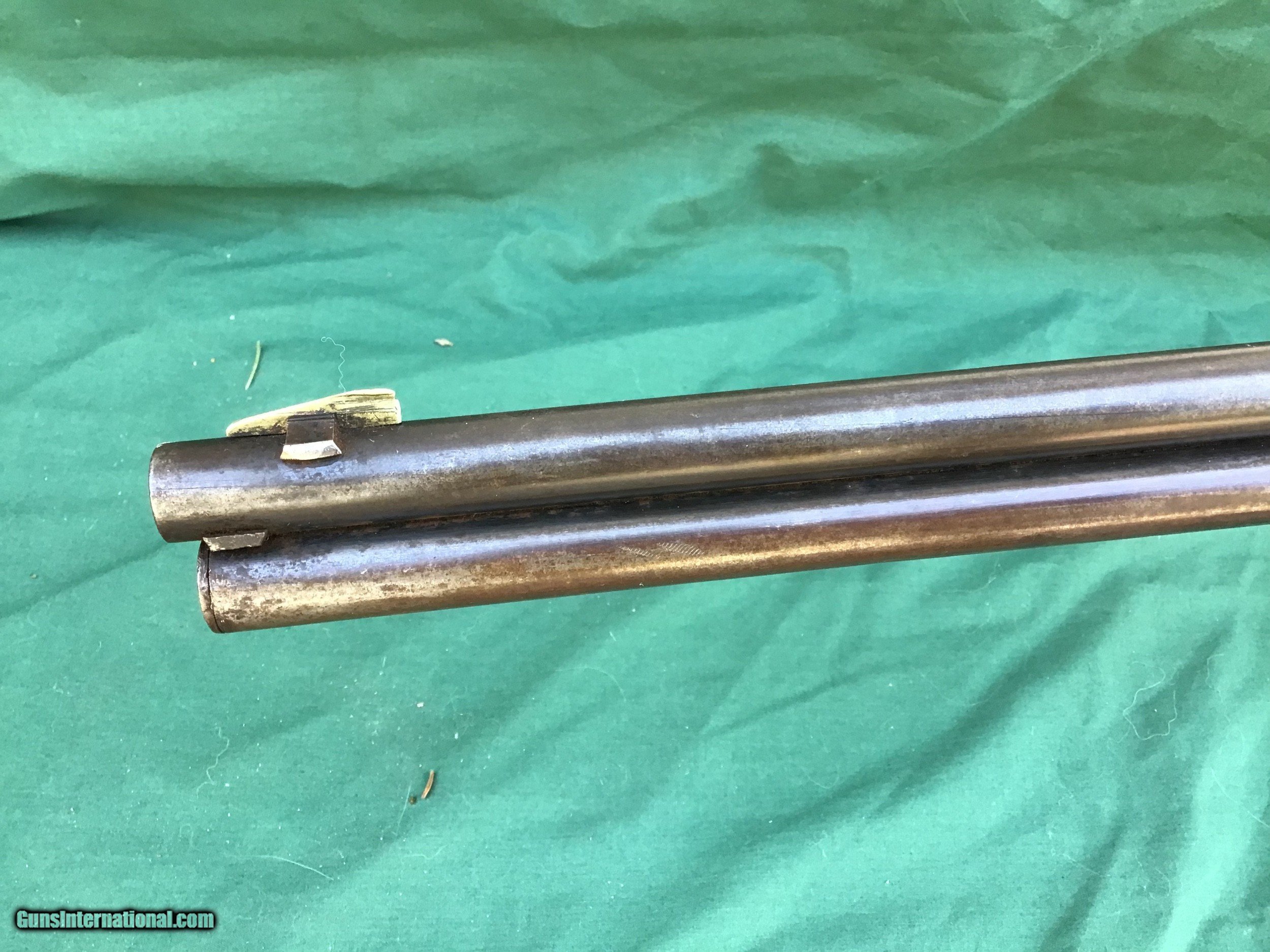 Description: Sold 1893 Marlin Indian Owned rifle in the ever popular 32-40 caliber, has a special ordered Hepburn receiver sight and hard rubber shotgun buttplate. My friend purchased this rifle from a gentleman that lived on the St Regis Indian Reservation 30 years ago and was told the gun was on the reservation from its very beginning. Manufactured right around the turn of the century. 26" round barrel and full magazine tube. The bore is about a 5 maybe a 6 on a scale from 1 to 10. Barrel and tube retain maybe 20% of it's original blue in protected areas and the remainder is a nice brown / gray patina. There is a ding near the muzzle on right hade side (see pic). Correct sights and has the special order Marlin Hepburn receiver sight ($450 value by itself). Receiver is a nice brown / gray patina with traces of finish in protected areas. Action functions nicely. Good markings. Both forend and buttstock are in fair condition, showing numerous handling marks, scrapes, and usage that you would expect from a gun with this kind of pedigree. Buttplate has a tiny piece missing and shows tiny crack in same area (see pic). Just a cool used but not abused special ordered Marlin with some nice history. Must ship to a FFL or Curio and Relics license holder. This firearm as with any other should be checked first by a gunsmith before any attempt is made to fire / operate it. Please feel free to ask questions. SOLD Curio/Relic: Yes |