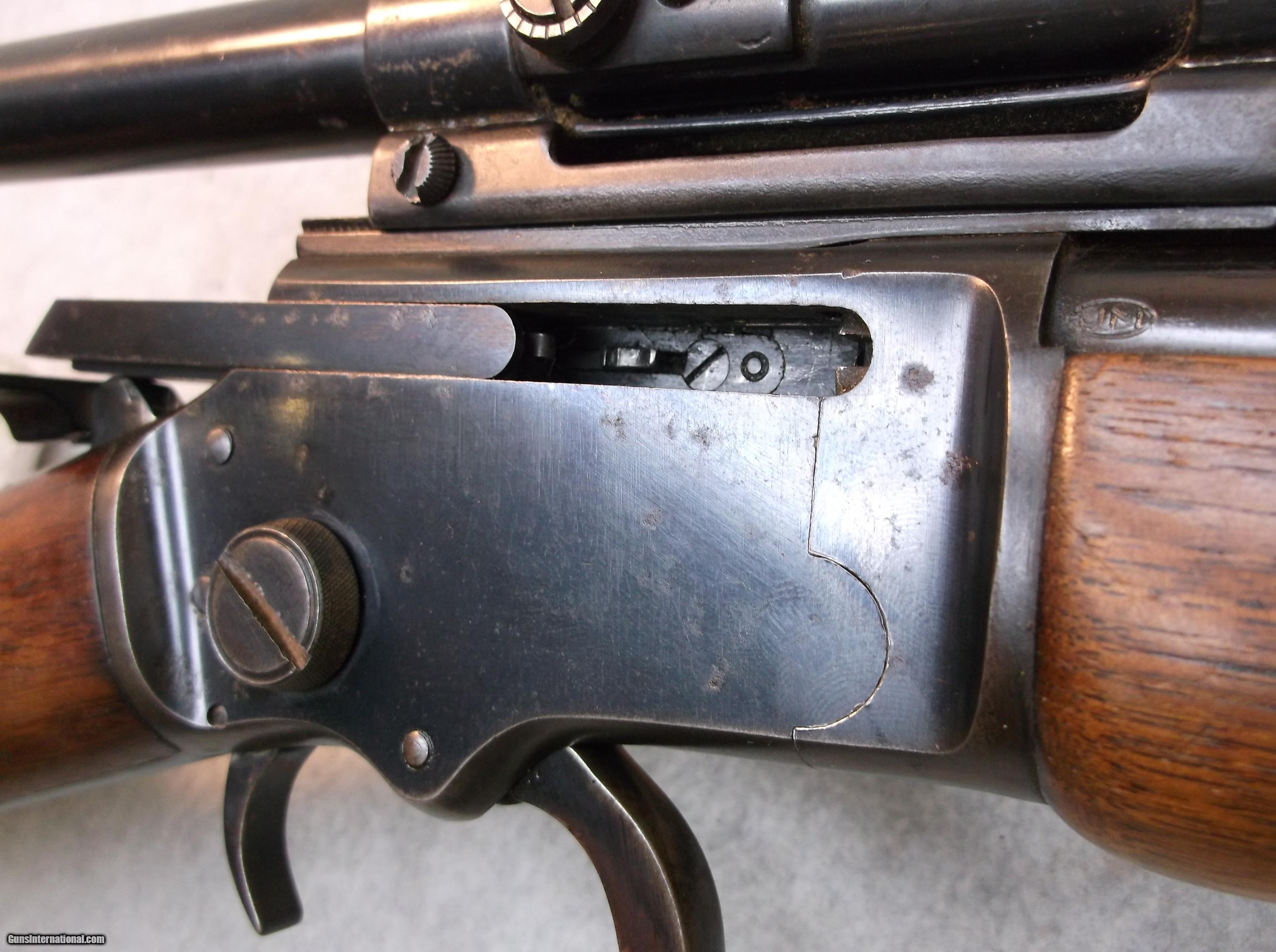 Description: 1956 vintage Marlin 39A lever action rifle shoots 22 short, long, and LR. 20" barrel. The rifle is in fairly good condition considering it's age. It is no safe queen though, and there is substantial loss of bluing including wear, some light rust, and freckling. The bore is bright and shiny and the action is smooth. The buttstock and fore end show typical type wear that is consistent with field use, transport, and handling. This includes dents, dings, scratches, and stains. There is also an extra hole for a sling swivel in the buttstock. Original Marlin butt plate still in place. Length of pull is 13-1/2". Optic is an early Weaver B4 in a Weaver Tip-off mount. Stock number B-174, please use this number when referencing this item. Willing to ship anywhere in the USA to your FFL holder, buyer pays freight. SOLD Manufacturer: Marlin Model: 39A Serial Number: N2XXXX Caliber Info: 22 s-l-lr LOP: 13-1/2 Manufacture Date: 1956 Item Location: Eugene, Oregon |