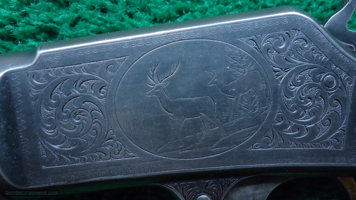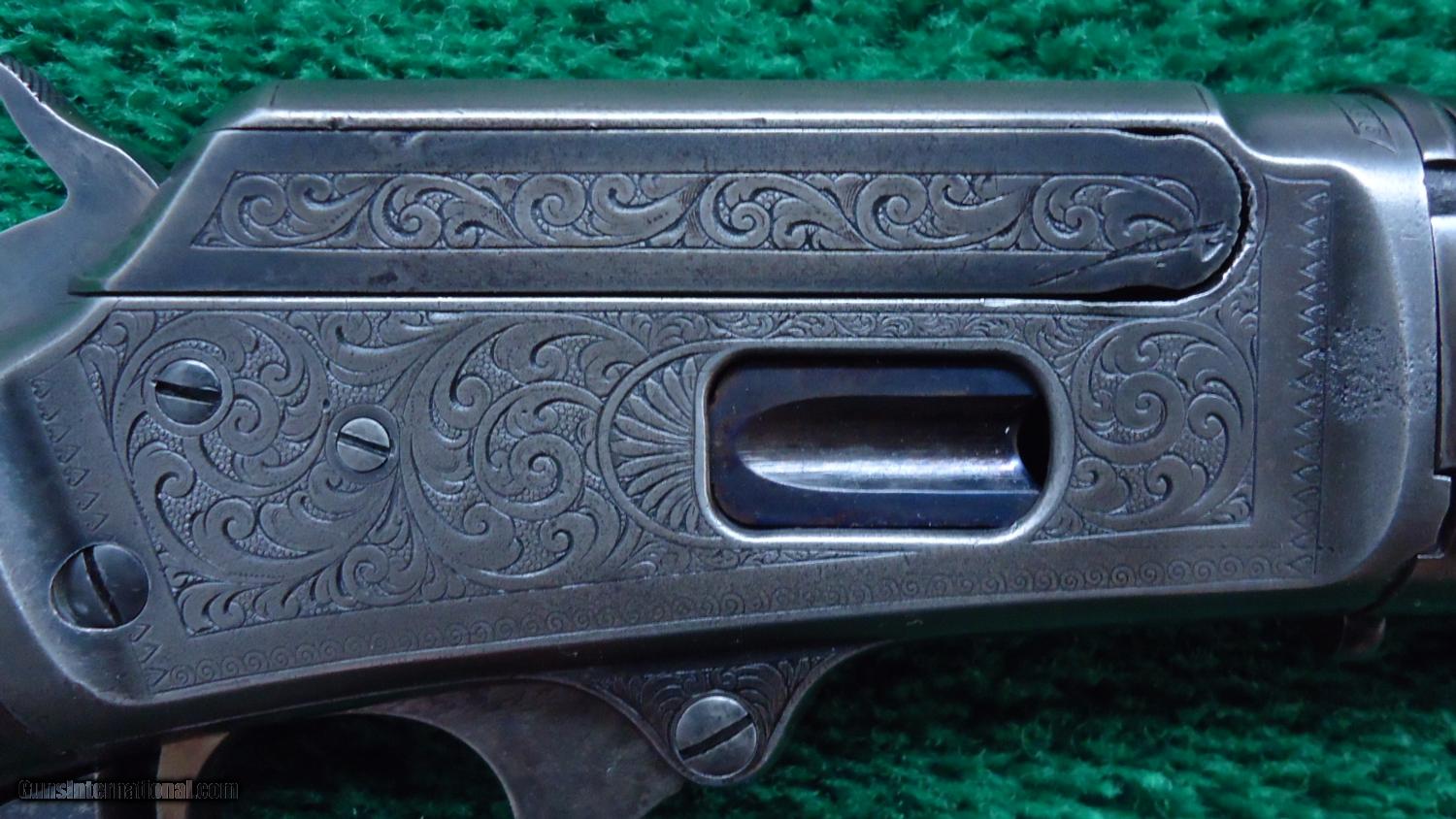 Description: This is a very pretty Marlin in exceptional condition. A special order take down rifle. Half oct bbl. A host of special order features including the checkered pistol grip dlx wood. Condition makes this gun stand out. Most metal finish remains. Some thinning of the blue in spots but still nearly all there. Nice sharp octagons. Very good markings all the way through. Beautiful factory engraving with the typical oval of 2 deer on the left side. Wood matches in condition. Nice deluxe wood is not undersized and fits good. It has had a coat of varnish or oil added years ago and was nicely done. Another bonus is the near perfect bore. Cal 32-20. Serial number is just under 350k. Exceptional Marlin rifle! Leroy Merz Antique Firearms specializes in antique and vintage Winchesters and other fine American firearms. Since 1965 Mr. Merz has taken part in the world of firearms and has been a contributor to many well known reference books. Just recently we mailed the 126th edition of our privately-published catalog. We have hundreds of additional guns in every price range at our home online. Search for Merz Antiques in google. SOLD Curio/Relic: Yes |