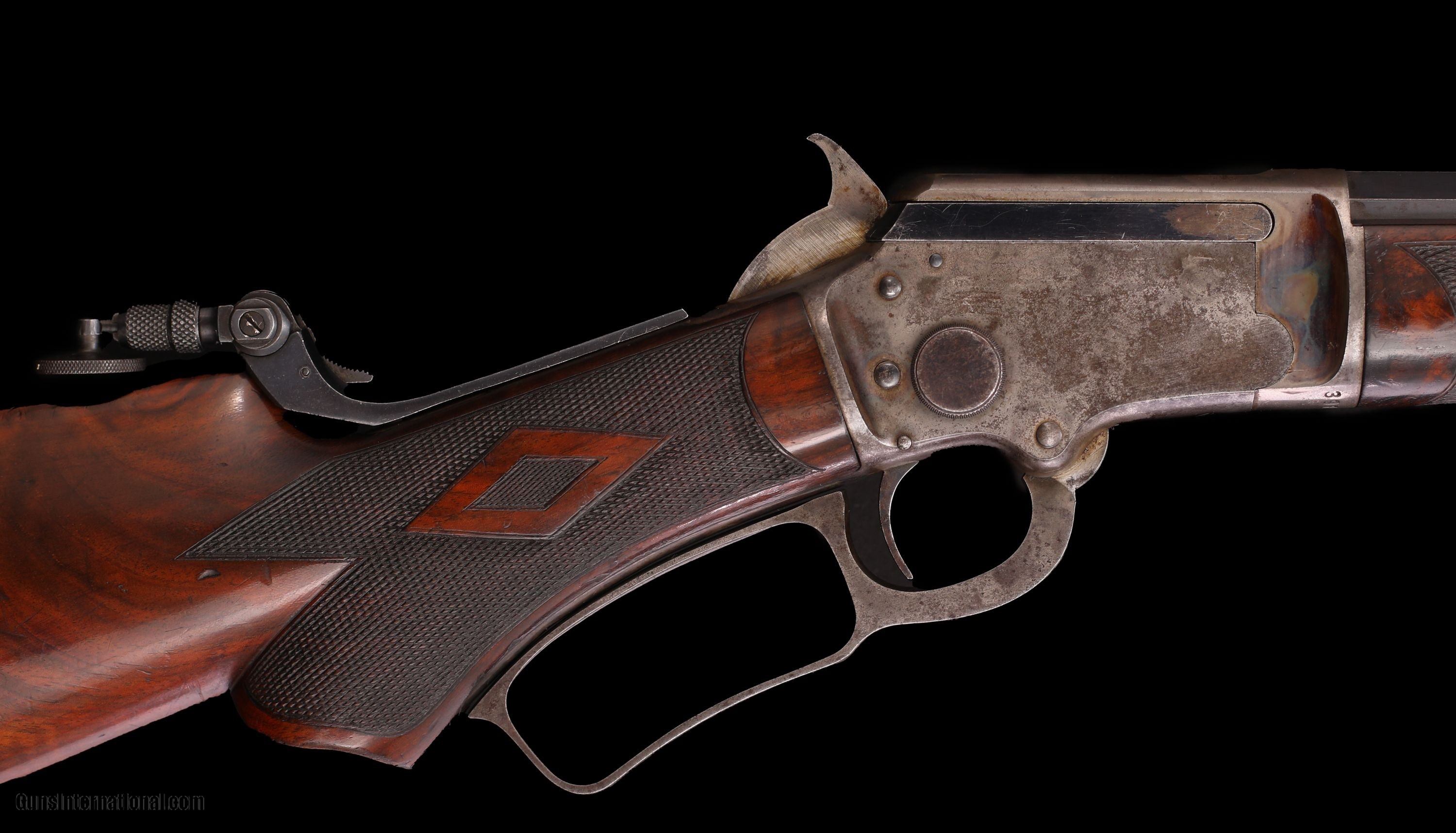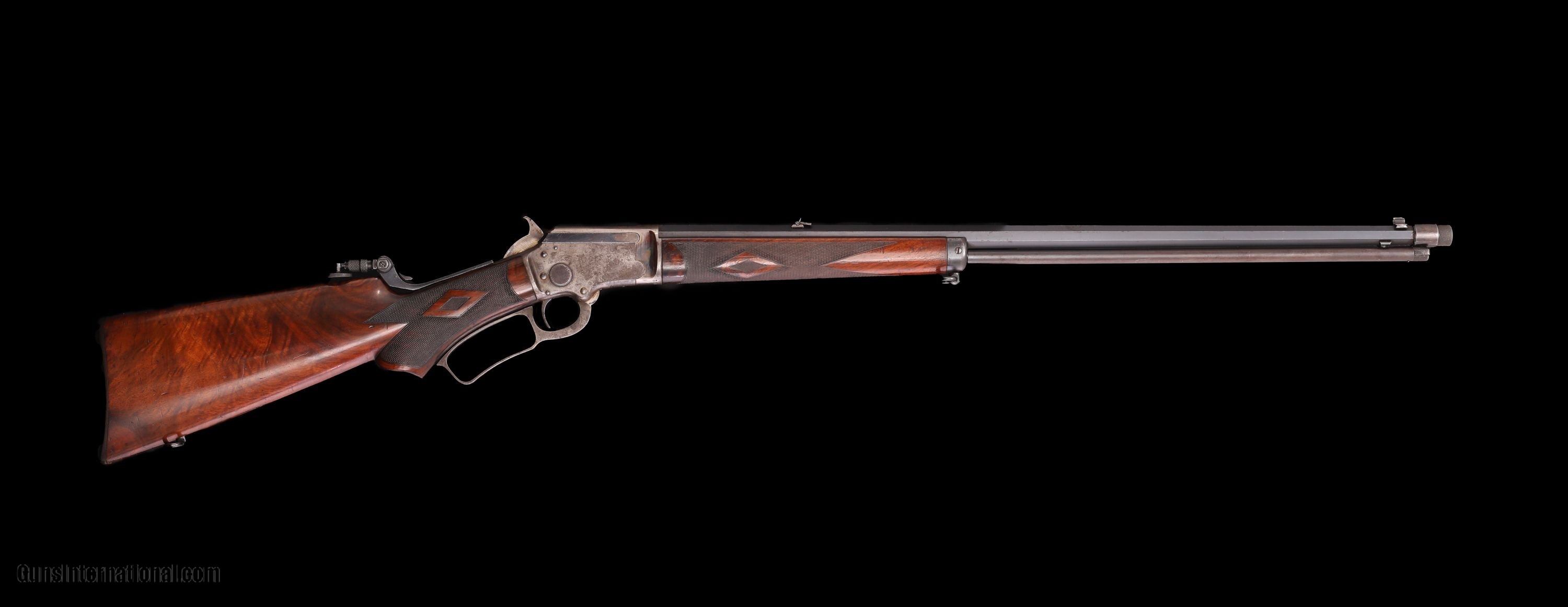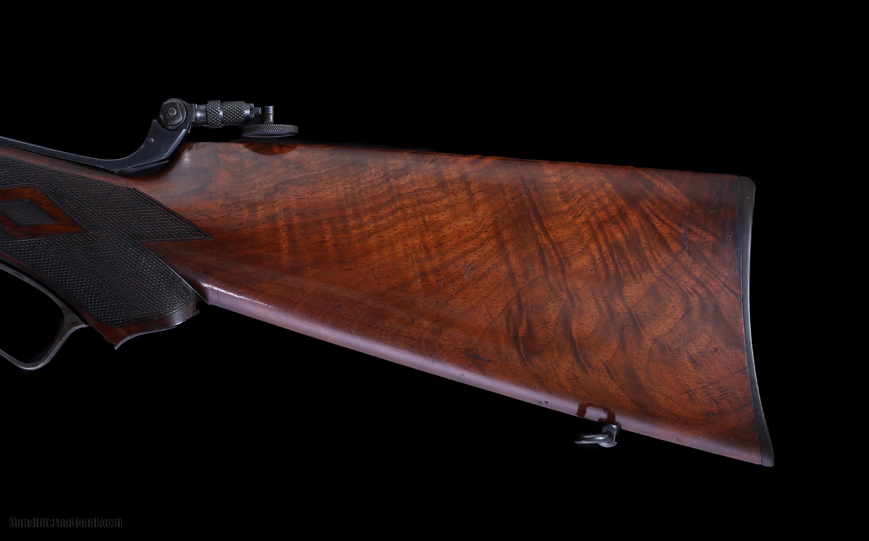 Description: Beautiful Factory Original Deluxe Marlin Model 97 rifle in .22 cal. This gun made originally with muzzle threaded for silencer which is rare. Has 24" full octagon barrel. Beautifully pattern checkered forend. Casehardened receiver with vivid color on left side. Pistol grip Deluxe American Walnut buttstock is beautifully checkered through the wrist, has Creedmore style grip and terminates with its original Marlin Co. buttplate. Gun is mounted with a Marbles tang sight as seen in the photos. Gun remains in excellent original condition. Barrel with about 90% original blue. Frame with more than 70% original case color, mottled some on the right side, but gorgeous vivid on the left side. Stocks are excellent with some handling marks and retain most of their original finish. Bore is bright and shiny. Mechanics are excellent. This rare Marlin is priced at $3195. What a great little set up being threaded! And in beautiful original condition to boot! Please dont hesitate to contact me with any questions or reasonable offers at (704) 280-2382 or via PM on this site. SOLD Curio/Relic: Yes Rifle Caliber: .22 Long Rifle, .22 Short, .22 Long Manufacturer: Marlin Model: 97 Deluxe Serial Number: 397393 Barrel Length: 24 Condition: Excellent and original Metal Condition: Excellent and original Wood Condition: Excellent and original Bore Condition: Bright and shiny Butt Pad: Original Marlin Buttplate Weight: 6lbs 4oz |