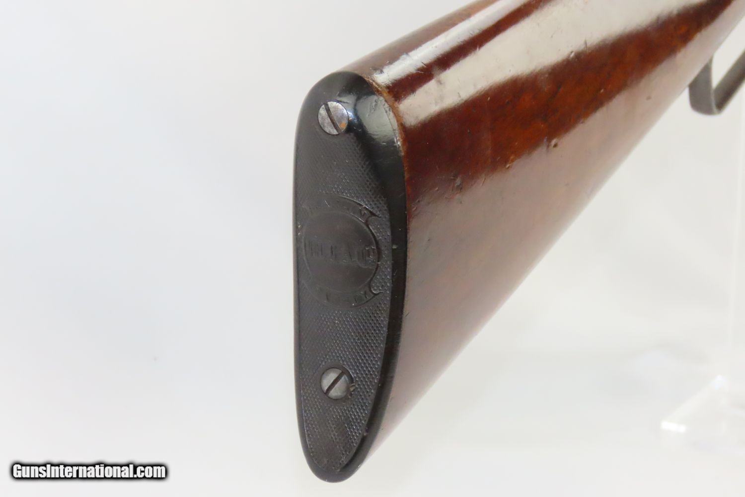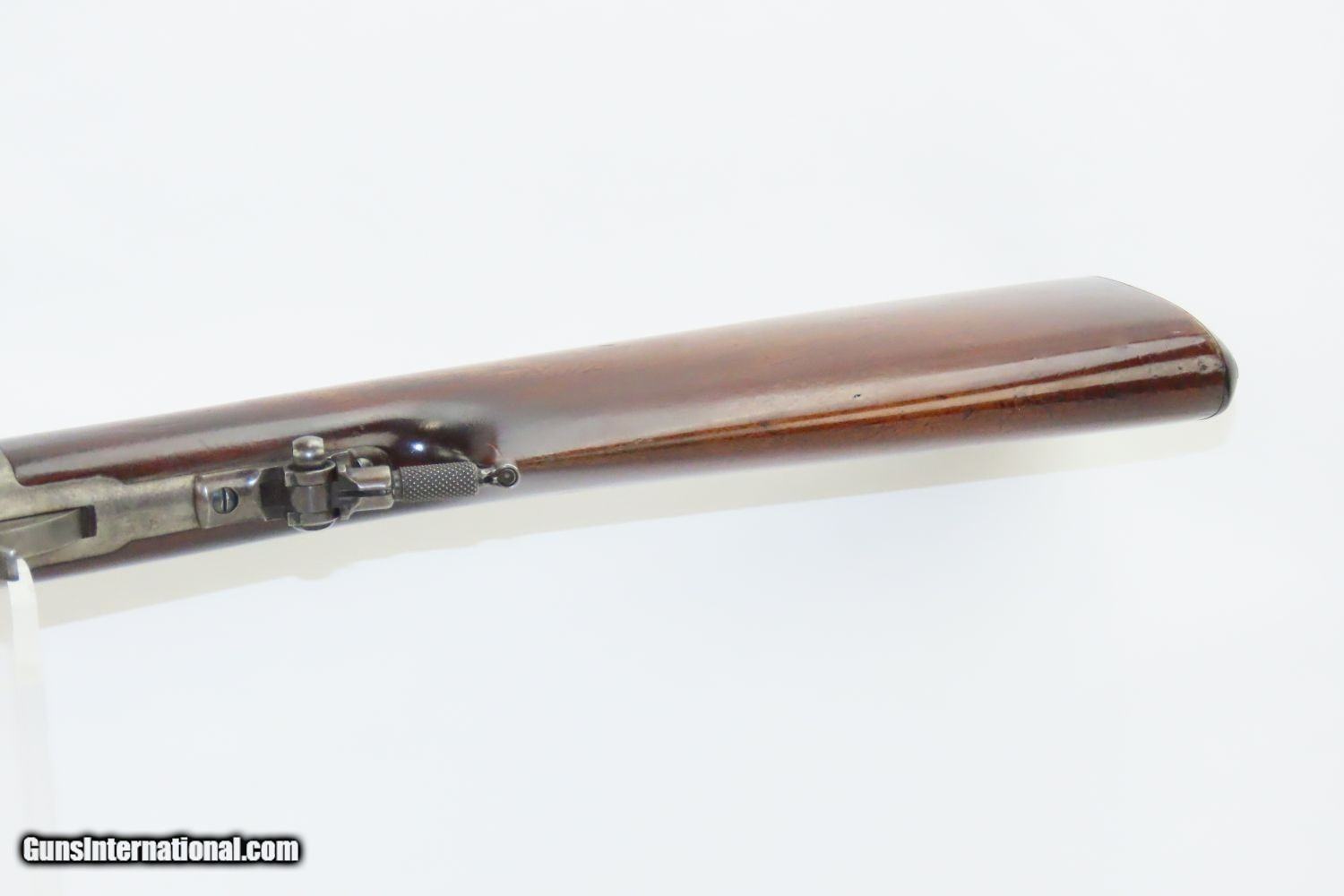 Description: DELUXE JM MARLIN Model 1893 Lever Action .32-40 WCF Rifle C&R Made in 1900 Marlin’s First Smokeless Powder Rifle! Here we present a Special Order J.M. Marlin Model 1893 Rifle in .32-40 WCF, made in 1900 in New Haven, Connecticut. Marlin Firearms was founded in the 1870s by John Marlin and was one of Winchester’s biggest competitors for the lever action market in the late-19th and into the 20th Century. Marlin produced a large assortment of firearms such as lever-action rifles, pump-action shotguns and single shot rifles. The Model 1893 represents Marlin’s first smokeless powder lever action rifle. It features a solid top frame with side ejection and a smooth action. This one features a part-octagonal, part-round barrel of 26 inches, chambered for the .32-40 Winchester Center Fire cartridge, one known for its inherent accuracy. Accentuating this attractive barrel profile is the half-length magazine. This rifle is also equipped with a tang mounted Lyman rear peep sight and a Lyman flip up sight, that has a simple blade as well as a post with a halo if flipped up. The barrel is blued and the receiver and lever case hardened. This rifle was one of the most popular Marlin lever-action models ever made with over one million model 1893s manufactured. This one is in great shape and remains a classic! The overall condition is fine. Lovely original blue finish and case colors. The action is strong and crisp. The bore is bright and in fine shape. All the marks are clear and sharp. “MFA” Marlin cast butt plate. “” on the barrel. “” on the top of the receiver. This is a sweet rifle that was clearly loved by its original owner. A great rifle in a great cartridge! This firearm is classified as a Curio & Relic. Barrel is 26 inches. Caliber: .32-40 WCF Overall condition as seen in photos. Very Fast. Very Safe. FREE SHIPPING. Will need to be sent to your local FFL or C&R licensee. This firearm is classified as a Curio & Relic. Guaranteed AUTHENTIC & Includes CERTIFICATE OF AUTHENTICITY. ancestryguns $3425 #200954 SOLD Curio/Relic: Yes |