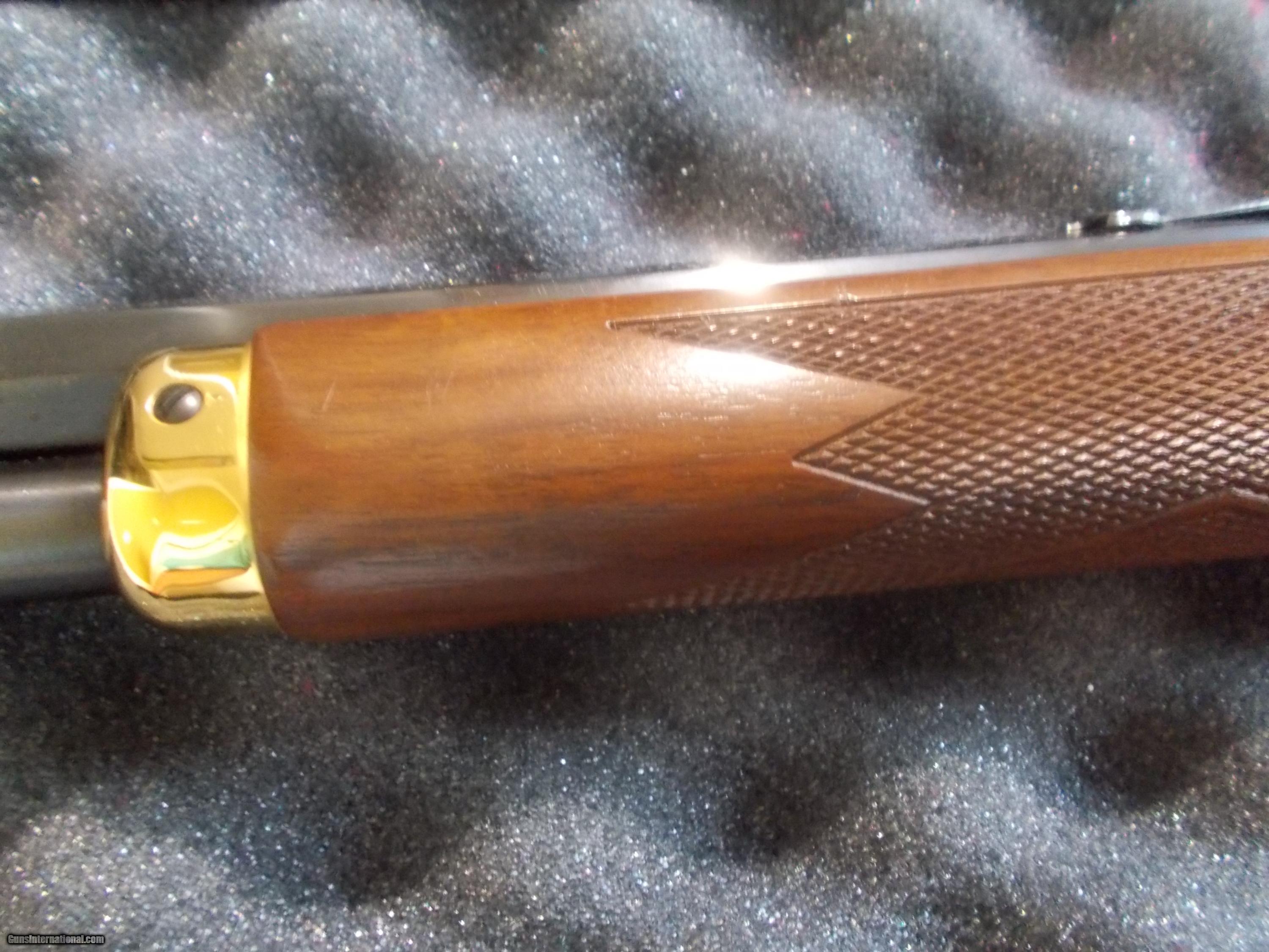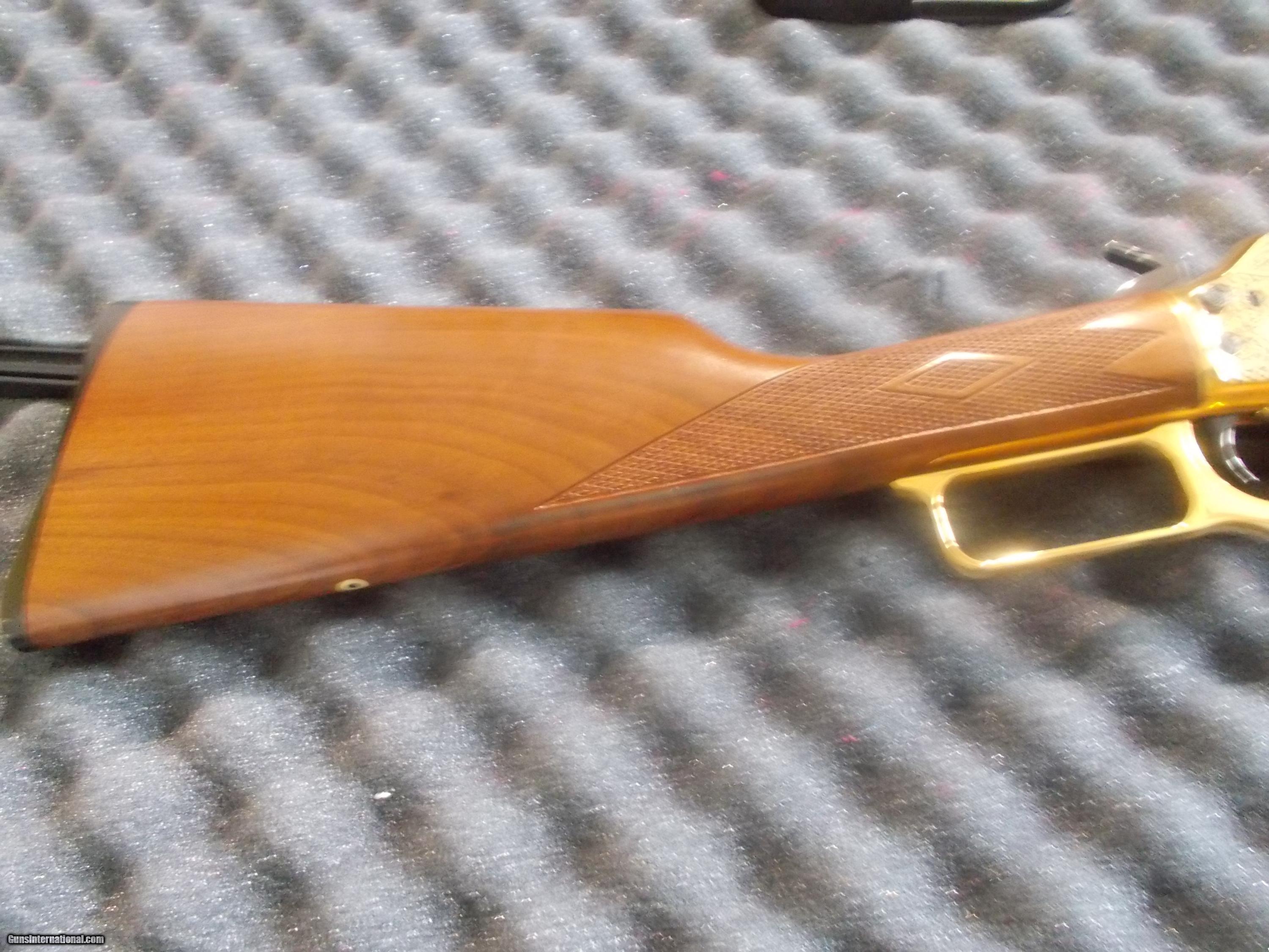 Description: (1 of 250) 24" octogon bbl., 24kt. gold intricately engraved receiver of the famous legend spirit 'White Buffalo', Indian hunteing Buffalo & White Buffalo calf with cow, with many 24kt. gold & silver Indian, buffalo & outdoor scenes & multiple accents, Info. history & paperwork 'Legend of Lakota Sioux & 'White Buffalo' also 'White Buffalo Calf Woman' enclosed unfired in case, all providence, case cover & original shipping box, Spl. Ltd. Edt. by America Remembers SOLD |