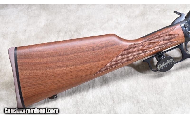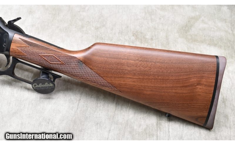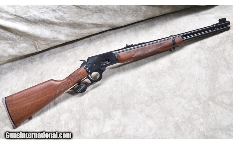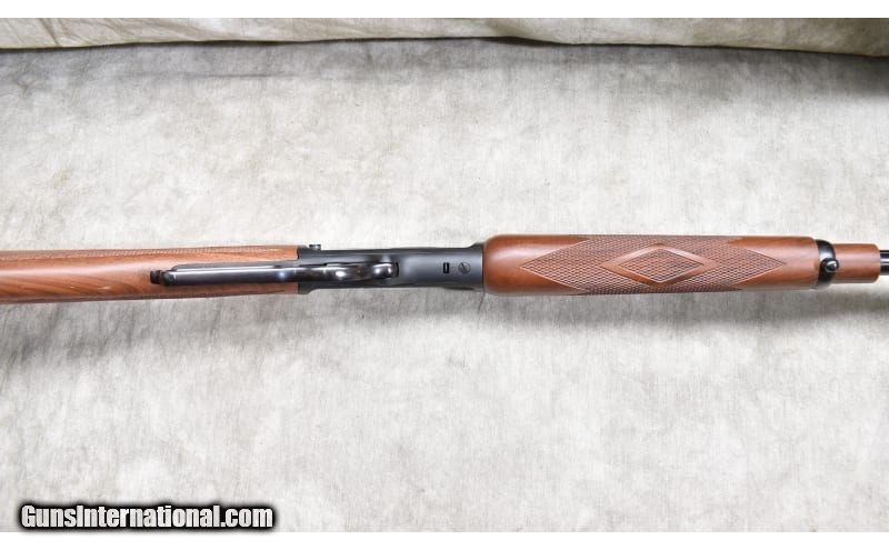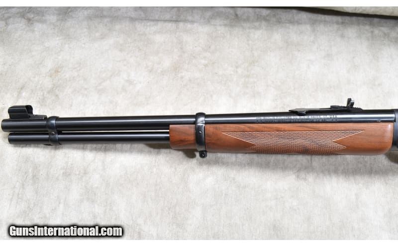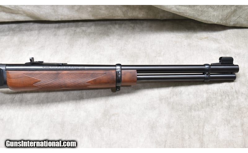 Description: This JM Marlin carbine features straight walnut stock, short (35-3/4 inch overall) length, light weight, and fast handling. This little rifle will pair handsomely with a revolver and make a wonderful woods running kit. .357 Mag./.38 Special SOLD Chambers: 9 Metal Condition: Excellent. Like new in the box. Wood Condition: Excellent. Like new in the box. Bore Condition: Excellent. Like new in the box. Barrels: 18-1/2 inch Triggers: Factory trigger. Stock Dimensions: 13-1/2 inch LOP. Fore End: Well-matched walnut. Butt Pad: Rubber pad. Weight: 5 lb - 11 oz Sights: Hooded white bead and semi-buckhorn iron sights. Drilled and tapped for scope. Item Location: Rogers |