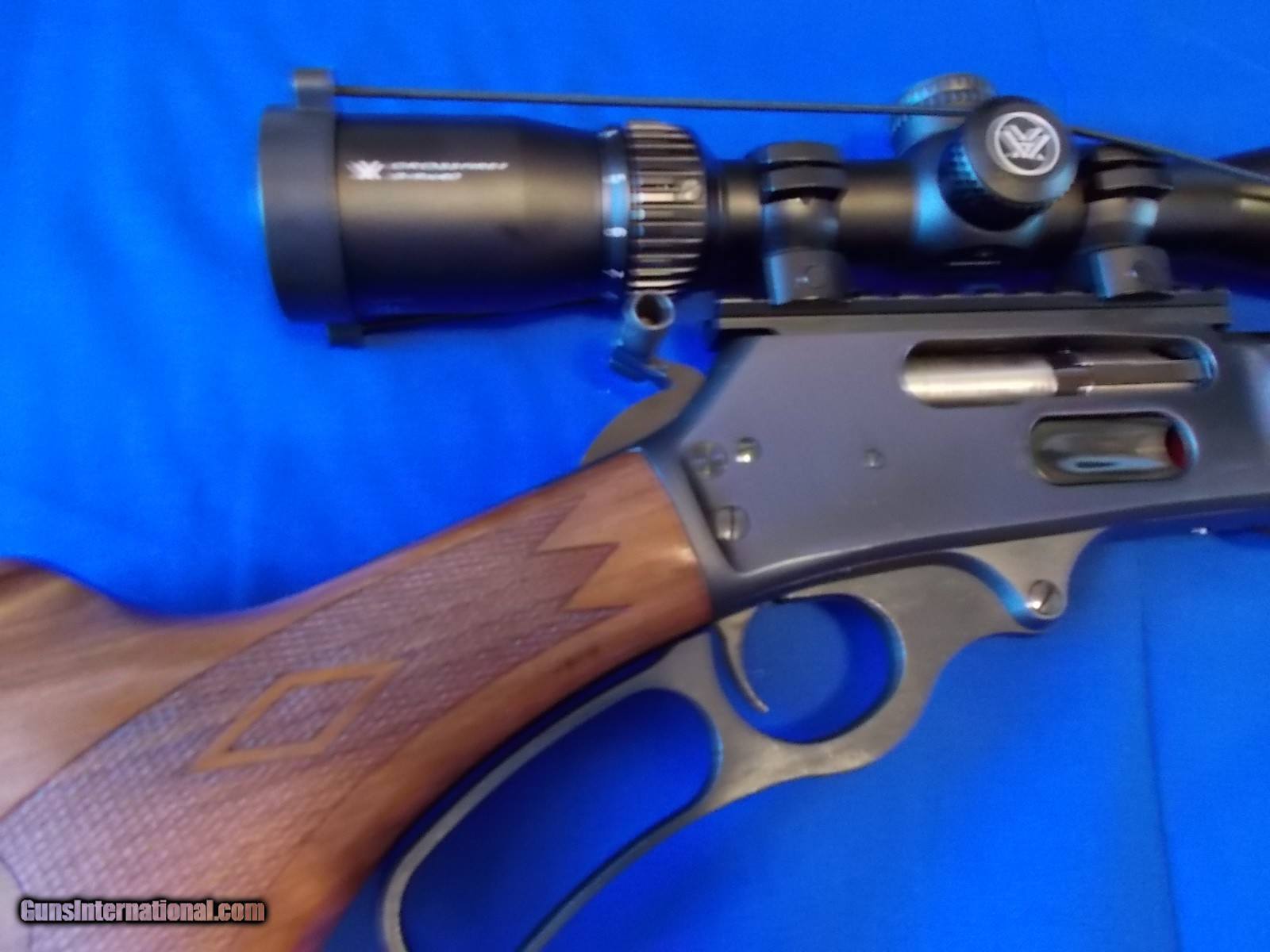Description: A very hard to find Marlin Model 1895 in .45-70, with a Vortex Crossfire II 3x9x40 Dead Hold Scope is up for . The rifle features an American Walnut pistol-grip butt-stock and fore-stock; a 4-round magazine; 20” barrel; cross-bolt safety, and a bright bore with strong rifling. The wood shows no marks or dings; the lever and action are tight with no wobble; the side loading gate spring is strong, and the rifle is in exemplary over-all condition. The serial number is MR 88780H. The gun will ship to you in a hard case, with a sling, recoil pad, and a box of .45-70 ammo. There is a $50 shipping and handling charge paid by the buyer and the gun will ship UPS ground insured. We accept PayPal, USPS Money Orders, or Certufied Check. SOLD Rifle Caliber: .45-70 Government Manufacturer: Marlin Firearms Model: 1895 Serial Number: MR88780H Barrel Length: 20 Bore: Strong Rifling Chambers: Very Good Ejectors: Very Good Condition: Very Good Metal Condition: Very Good Wood Condition: Very Good Bore Condition: Bright Barrels: Very Good Action: Lever Triggers: Strong Stock: Very Good Butt Pad: Rubber Recoil Pad Finish: Very Good Weight: 8 Sights: Vortex Scope |