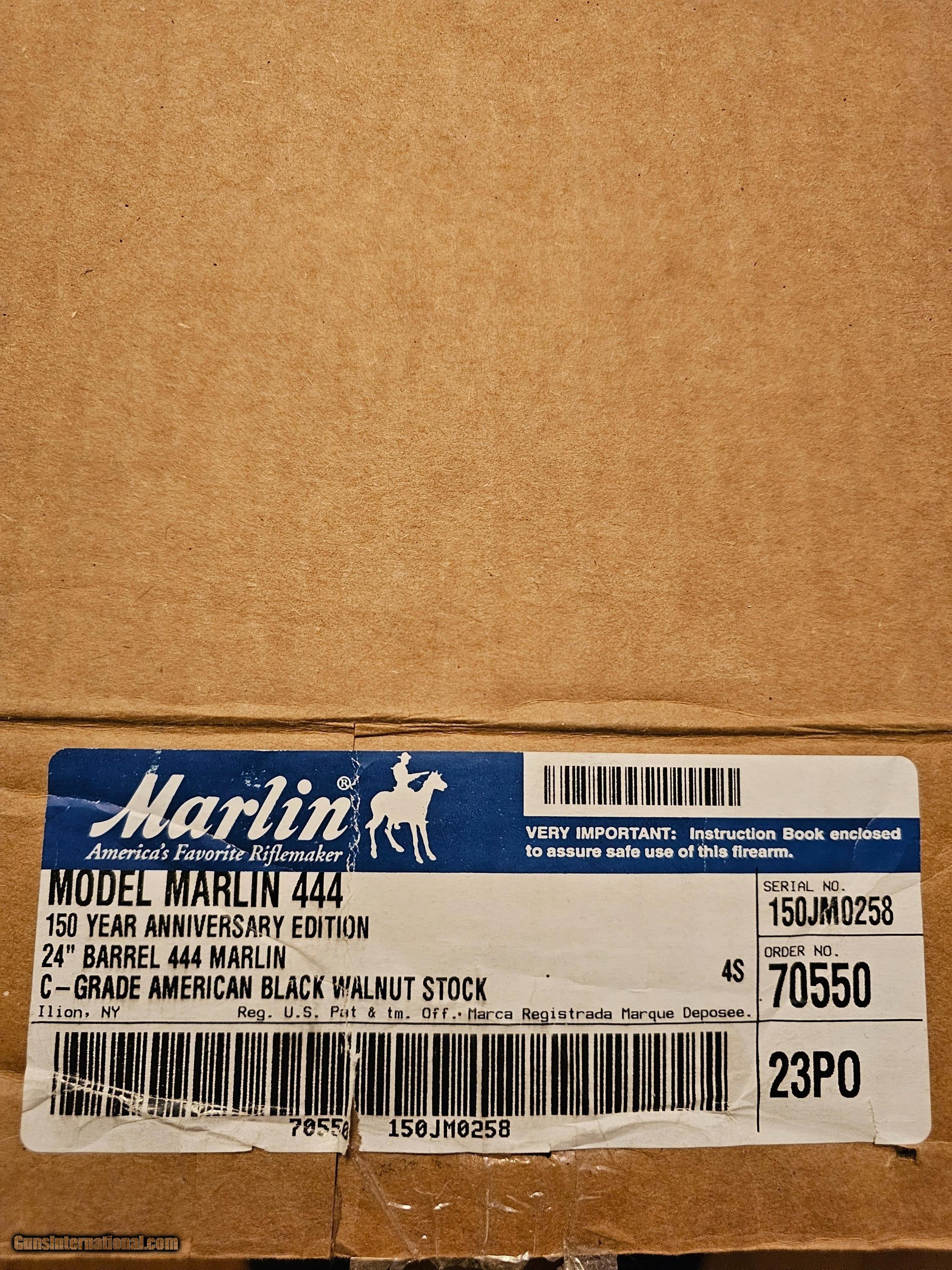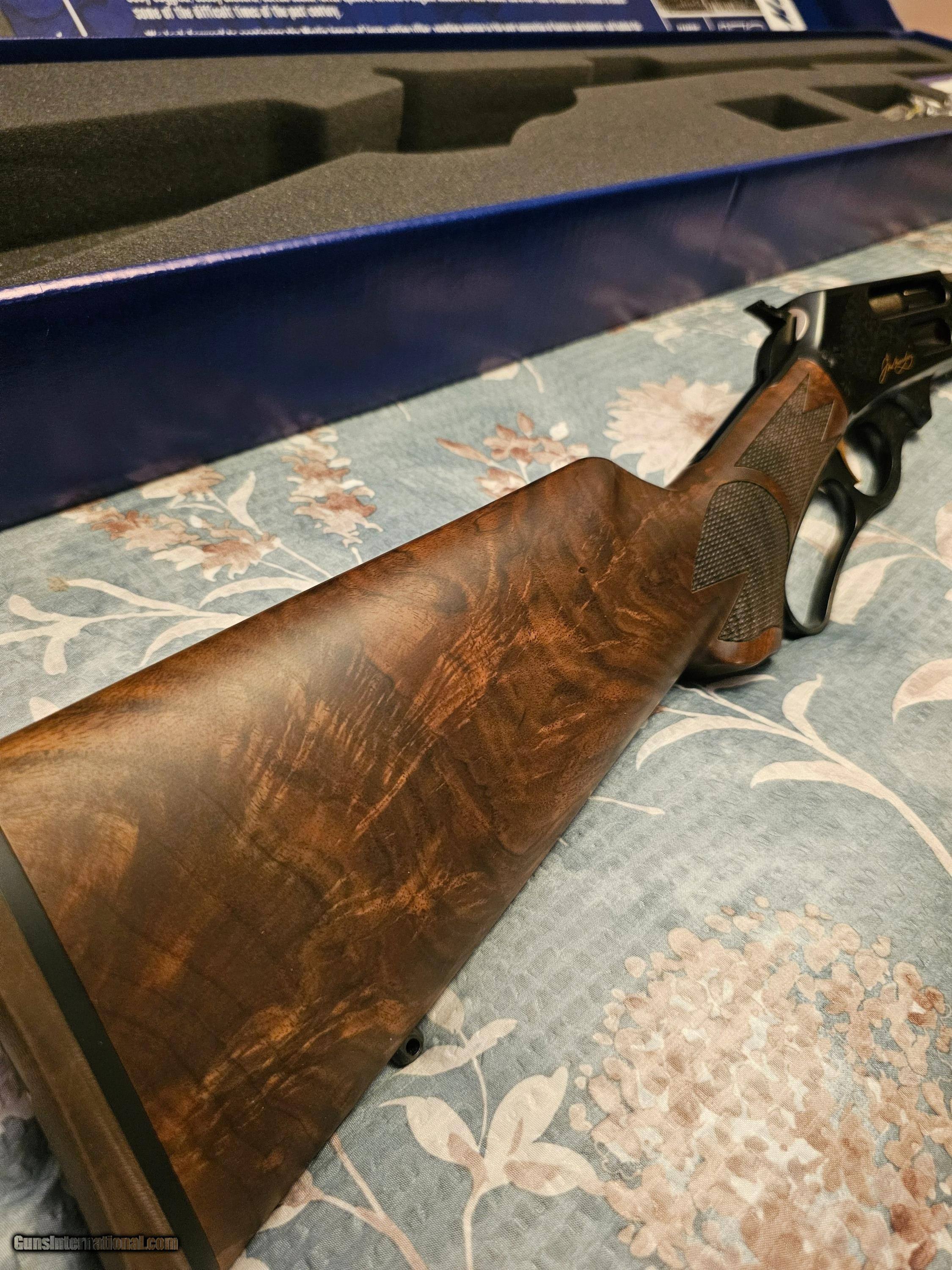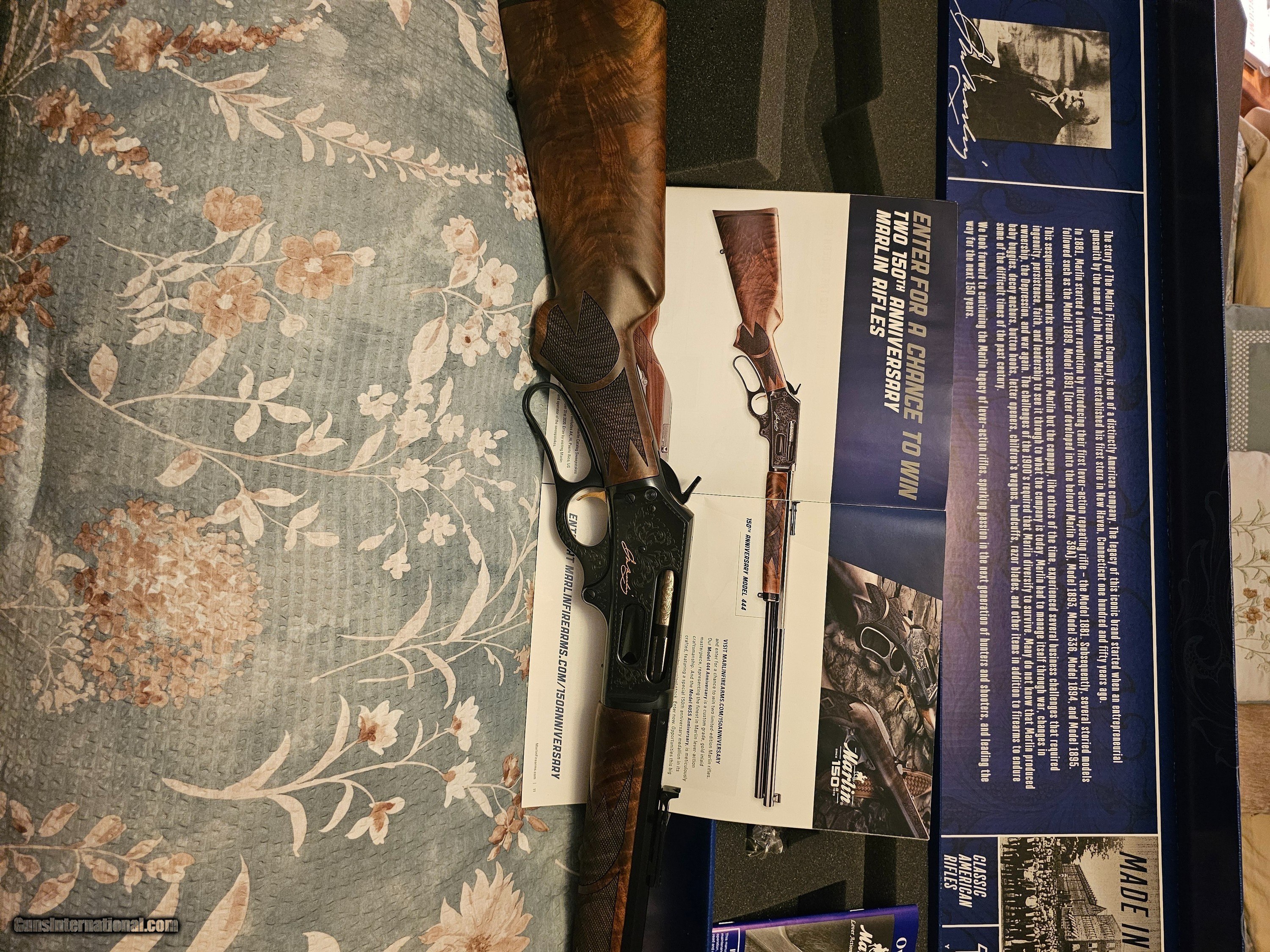 Description: This is a Brand New Marlin 150 Year Anniversary Edition rifle chambered in 444 Marlin. This is new in the box and unfired. These rifles were built in 2020 in very limited numbers. This rifle is fitted with top grade wood, a Skinner ladder rear sight, factory sling studs, half octagon/ half round barrel and factory engraving. More pictures available upon request. Shipping is included in the price. I will also need a copy of your preferred FFL to ship to. Thank you. SOLD Rifle Caliber: .444 Marlin Manufacturer: Marlin Model: 150th Anniversary Condition: New In Box Action: Lever Action Stock: Walnut Manufacture Date: 2020 Engraving: Factory Engraved |