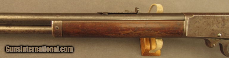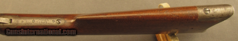 Description: S# 224954, 30-30, 26 inch barrel, bright excellent bore. factory records state that this 1901 manufactured 1893 was originally in 25-36 Marlin caliber. It was rechambered to 30-30 with the barrel marking overstamed with individual dies. Gun looks great with strong traces of case colors on receiver and lever under a developing mottled patina. Barrel and mag tube show about 40-50% blue with dried grease and oxidation stains scattered about. Wood is sound with typical marks from use, a little extra oil was wiped on long ago. Screw slots are crisp, sights are original and action is smooth. There is some info going around that some of the 25-36 Caliber 1893s were converted to .30-30 by Marlin before they left the factory. We have no way to verify this may or may not be one of them. FFL or C&R SOLD Manufacturer: Marlin Model: 1893 Serial Number: 224954 Caliber Info: .30-30 Gauge Info: .30-30 |