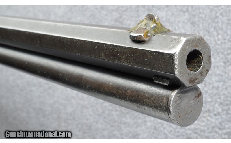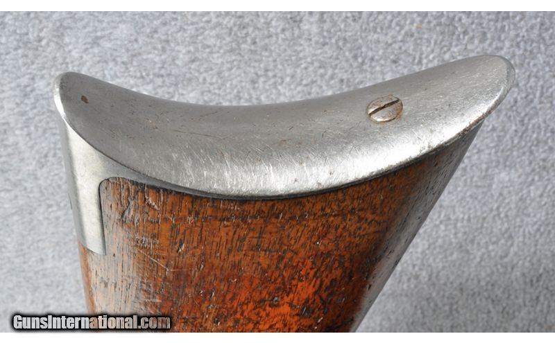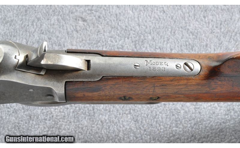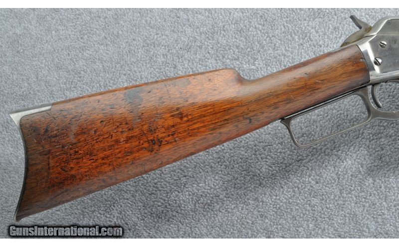 Description: The Marlin 1893 is a side eject lever action rifle that made the transition to smokeless powder cartridges as this one has. Made in 1898 this rifle carries the 26" octagonal Special Smokeless Steel barrel. .30-30 Winchester SOLD Antique: Yes Metal Condition: Shows moderate finish loss with a fair amount of original blue on the barrel. Faint case color remains on the receiver. A few screw heads show some deformation. Wood Condition: Wood appears in good condition with the exception of a crack at the wrist that has been repaired with glue and two brass screws. Bore Condition: Bright, showing slight wear at the lands Barrels: 26" Octagonal Stock Dimensions: 13" LOP Fore End: Uncheckered with metal fore-end tip Butt Pad: Metal Crescent Weight: 8 lbs. Sights: Dovetailed blade front, Sporting leaf rear Item Location: Grand Junction, CO |