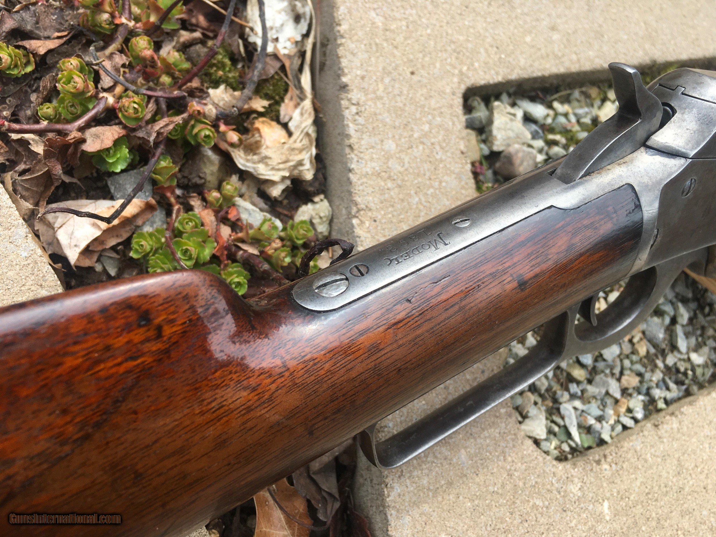 Description: SOLD , awaiting payment Listing another old Marlin 1893 This one in the early 32/40, sn 208633, Mfg'd in 1900, almost an antique but a year shy. She's got a 22" barrel , wood looks to be untouched as is the metal finish. She loads, cycles and shoots fine, I've got a good number of rifles and want to sell some off.I've sold a good number but have plenty to go. I took plenty of pictures outside and of the bore in good light. I believe the rear open sight is original the front blade has been replaced with what seems to be a copper blade. Shoots fine. I'll ship it for my listed price to the lower 48 and only to your FFL or if you've a C&R that would work. I'm a collector thinninghis herd. Payment in a cashiers check or postal money orders. If you'd care to call or text please do. 920-590-3400 thanks and enjoy your day Sold to Joe Hasser , Navarino , $1515. SOLD Curio/Relic: Yes Rifle Caliber: .32-40 Winchester Manufacturer: Marlin Model: 1893 Serial Number: 208633 Condition: Fine Metal Condition: Original Wood Condition: Original Bore Condition: Fine Barrel Type: Octagon Action: lever Triggers: single Stock: rifle , straight Butt Pad: crescent Finish: original Weight: 7.5lbs Sights: open rear Manufacture Date: 1900 |