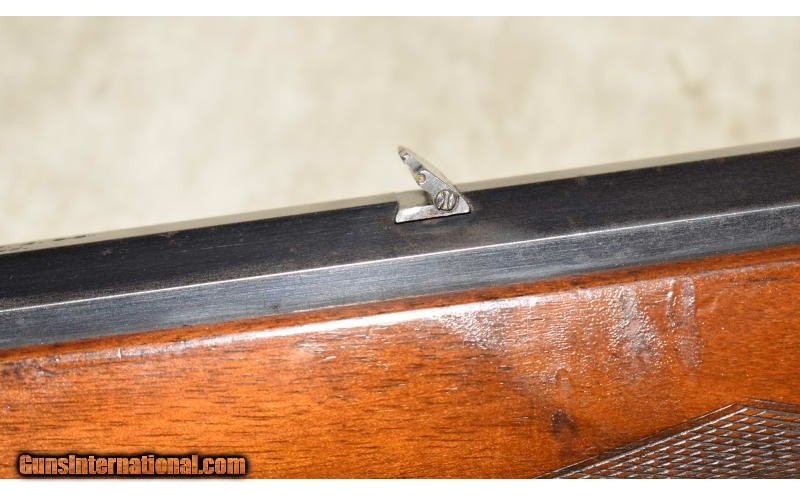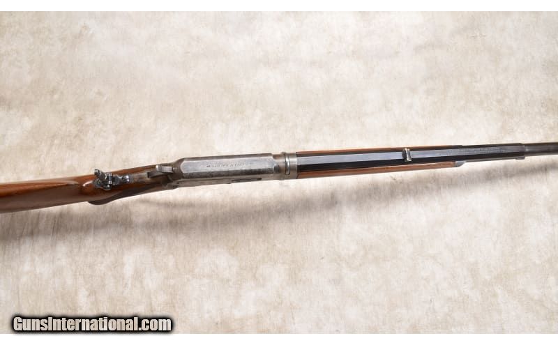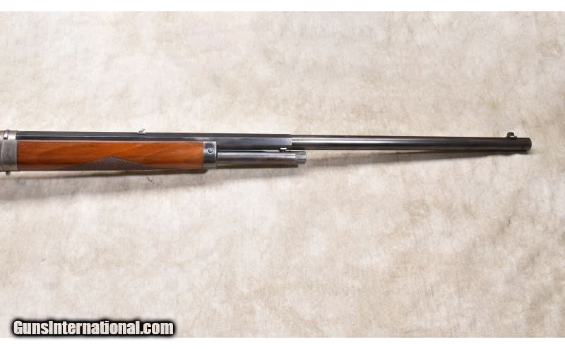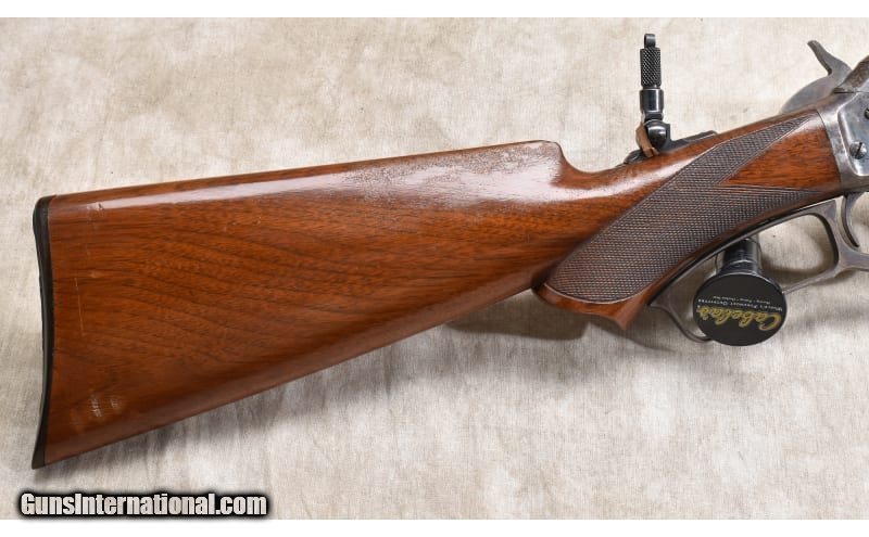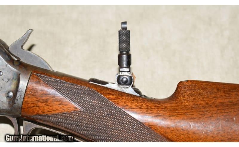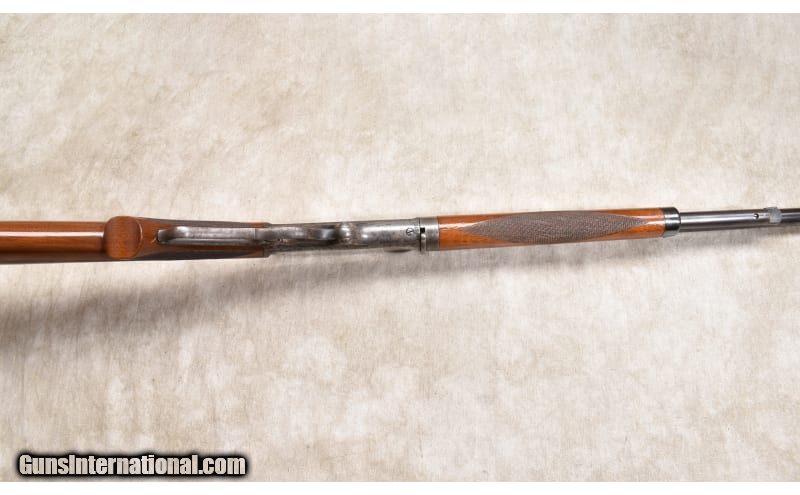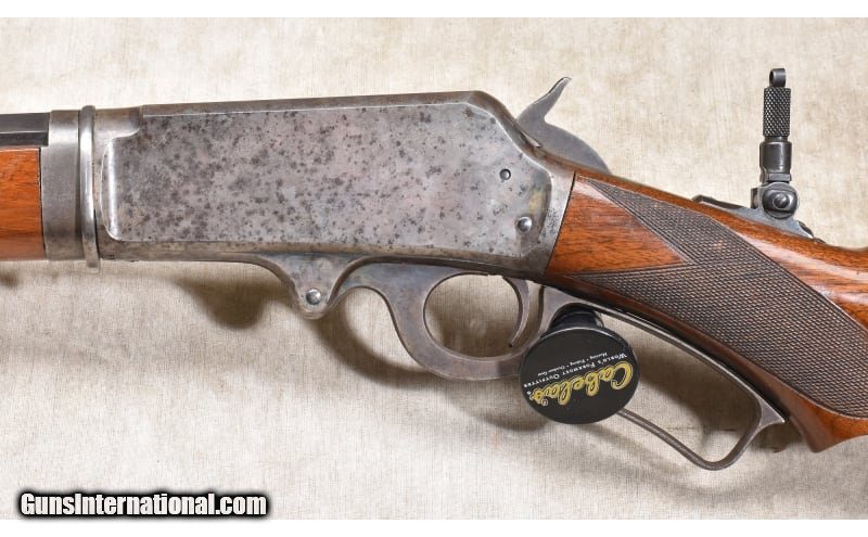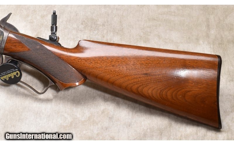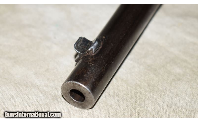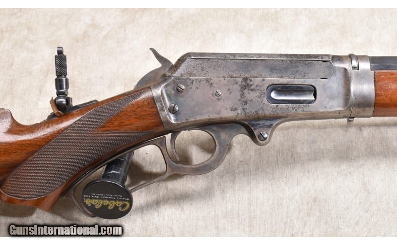 Description: This Marlin 1893 features takedown frame, 26-inch 1/2 round barrel, and 1./2 magazine. The original sight is still in place and it has an add-on peep sight. Very little of the original blue remains, but the rifle is not rusty. The date of manufacture is estimated at 1896. .30-30 Winchester SOLD Chambers: 5 rounds Metal Condition: "Fair. All surfaces trending to patina grey, pitting on the barrel. Wood Condition: Good. There a few dents/handling marks. Bore Condition: Shiny and bright with good rifling. Barrels: 26 inches Triggers: Factory trigger Stock Dimensions: LOP: 13-3/8 inches Fore End: Matching walnut. Butt Pad: Black plate. Weight: 7 lb - 6 oz Sights: "Bead front sight, folding leaf mid-barrel sight, peep tang sight. Item Location: Rogers |