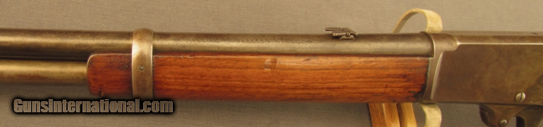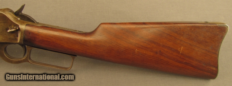 Description: S# 432883, 32-40, 20 inch barrel, bright very good bore with a scratch on left side. This carbine was built around 1914 and remains in very good condition with barrel and mag tube faded to a mostly brown patina. receiver and lever show traces of case colors under a developing brown patina. The top tang is missing two filler screws in the sight holes. A two leaf folding rear sight is mounted. Wood fits well and remains sound with typical small dents and dings. Forend tip has a small but deep impact mark on bottom left. Stocks had a little oil wiped on long ago. Saddle ring is missing, receiver has no mark from wear, it must have been removed when gun was new. Bore has a six inch scratch from a cleaning rod, gun still shoots four rounds into 2 inches at 50 yards. FFL or C+R SOLD Curio/Relic: Yes Manufacturer: Marlin Model: 1893 Serial Number: 432883 Caliber Info: .32-40 Gauge Info: .32-40 |