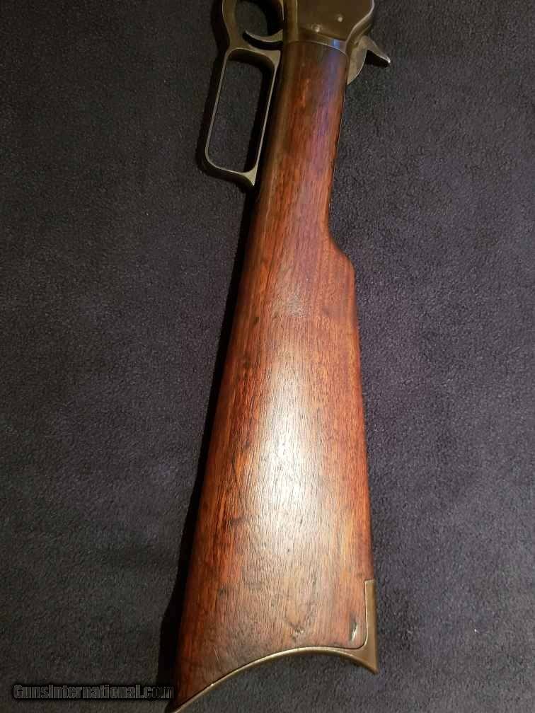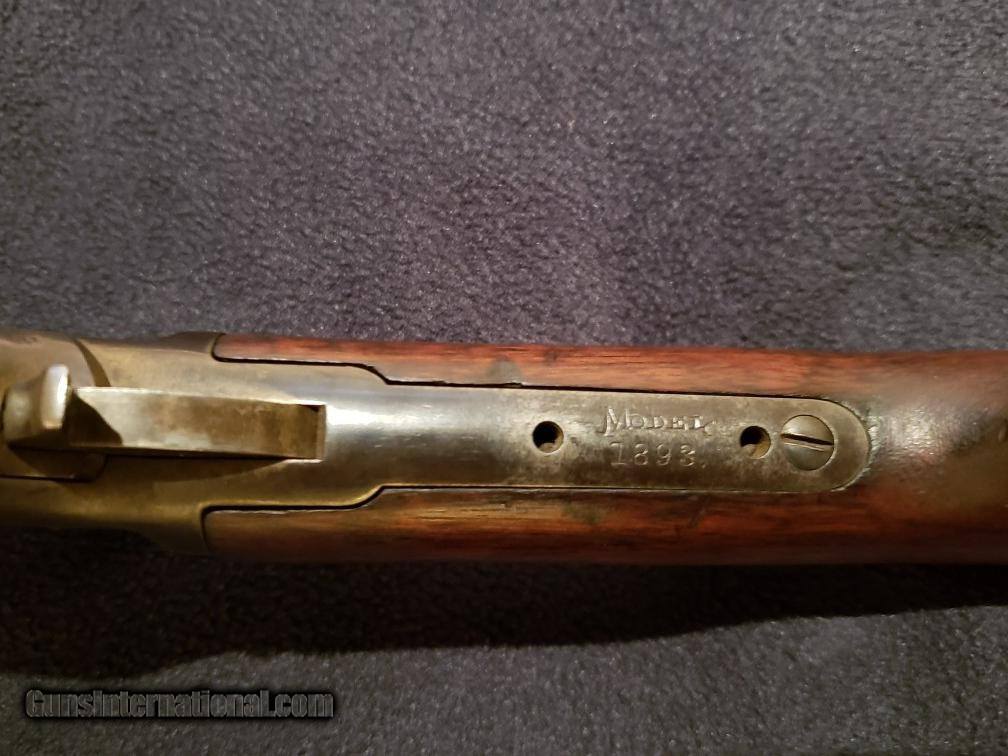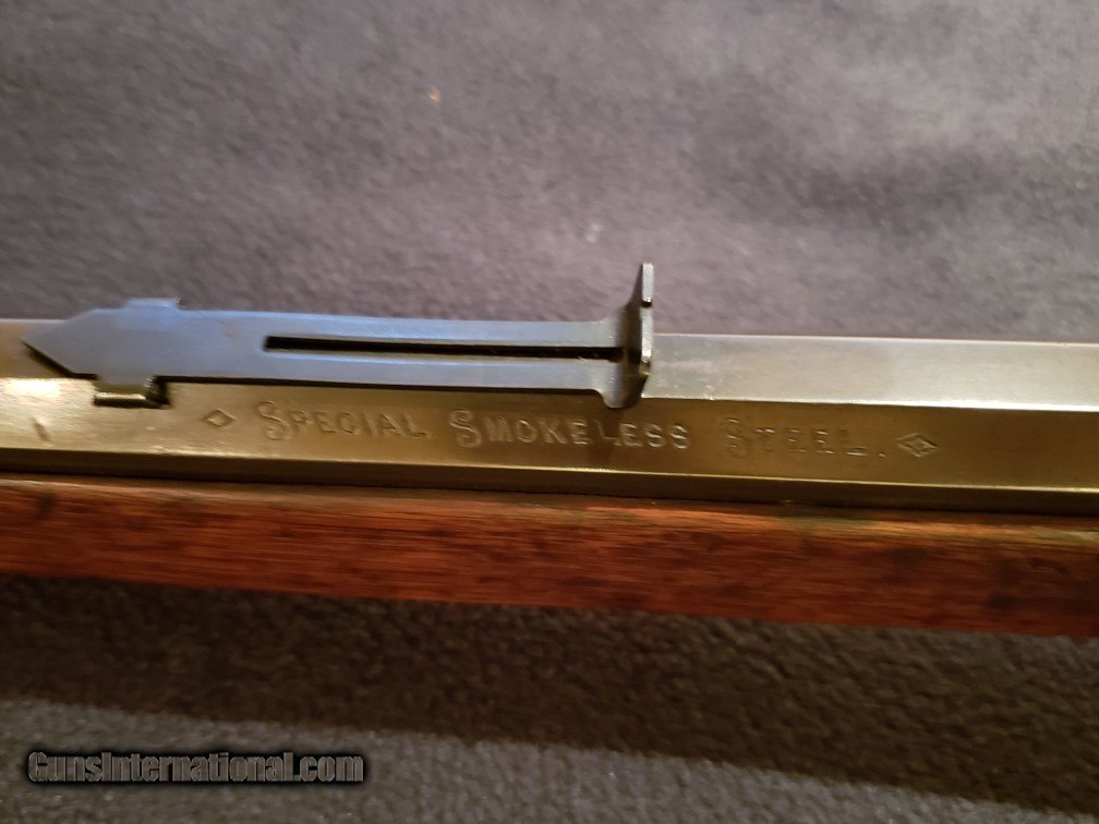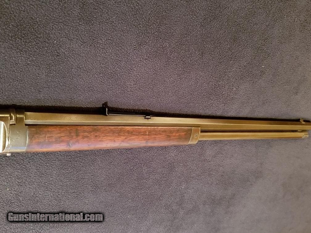 Description: Marlin 1893 Takedown Rifle. .30-30 caliber. Mfd. 1901. s/n 220291. 20" octagon barrel. "Special smokeless steel barrel. Marlin Fire-arms Co. New-Haven, CT. U.S.A., Patented, Oct. 11. 1887. April 2. 1889. Aug 1. 1893. Marlin safety." Very nice wood and condition. SOLD Manufacturer: Marlin Model: 1893 Serial Number: 220291 Caliber Info: .30-.30 |