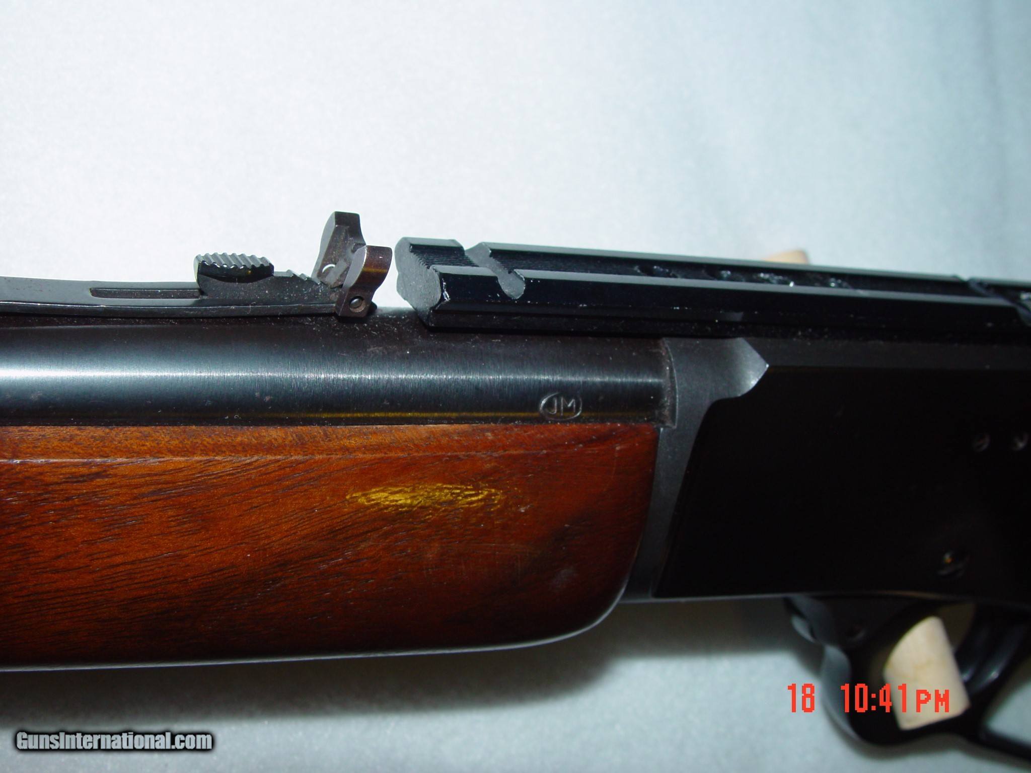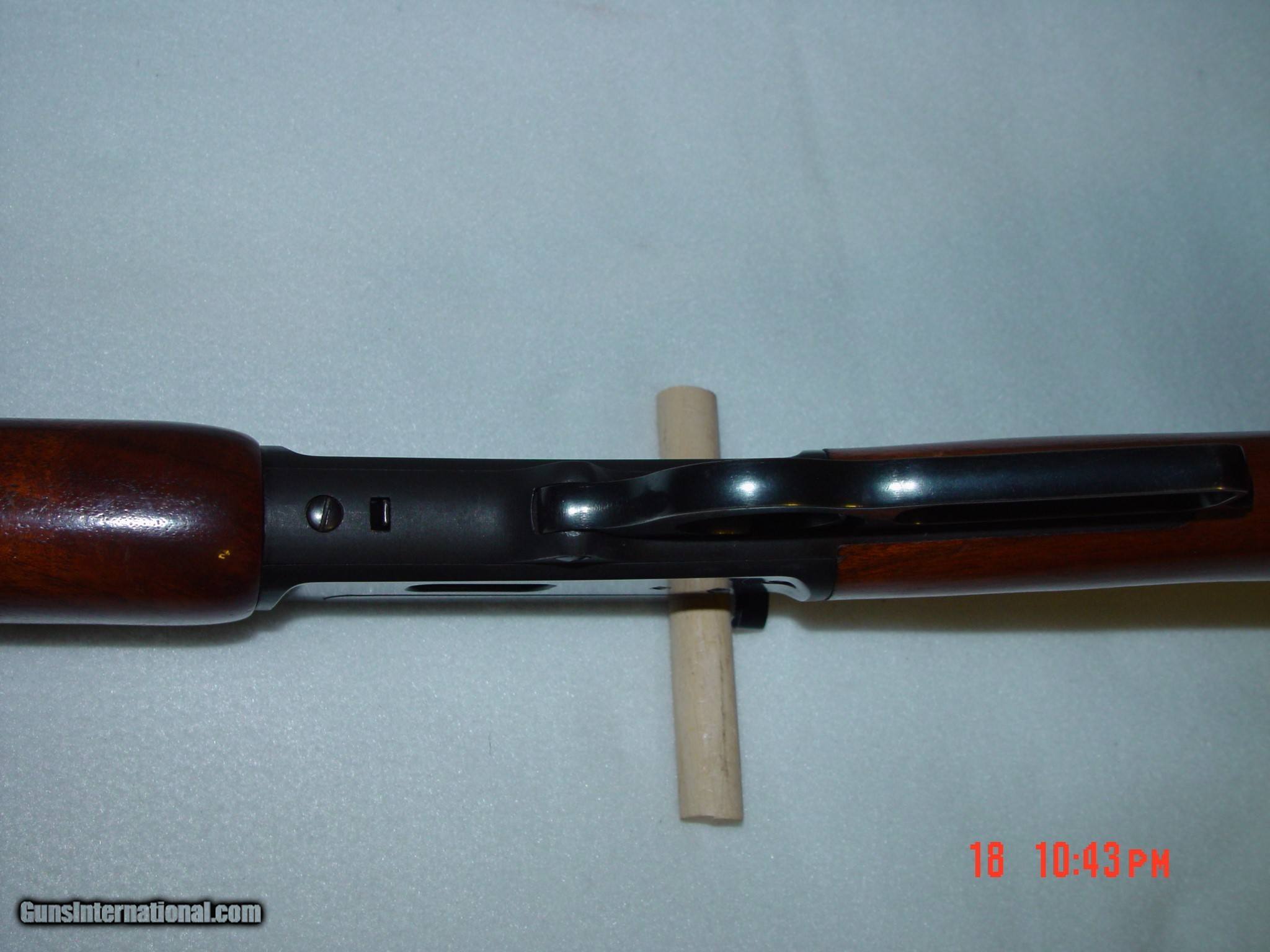Description: THIS MODEL 1894 MARLIN HAS A JM MARKED 18" BARREL AND IS TYPICAL OF SUCH MODELS MADE AT THAT TIME. THE GUN IS IN EXCELLENT CONDITION INSIDE AND OUT WITH NO METAL WEAR APPARENT AND ONLY A COUPLE LIGHT HANDLING MARKS ON THE WOOD. IT HAS A WEAVER SCOPE BASE MOUNTED ON TOP OF THE RECEIVER. THIS RIFLE IS IN THE DESIRABLE .357 MAG CALIBER AS IT IS COMPATIBLE WITH A SIMILAR CALIBER HANDGUN REQUIRING THE CARRYING OF ONLY ONE TYPE CARTRIDGE. SOLD |