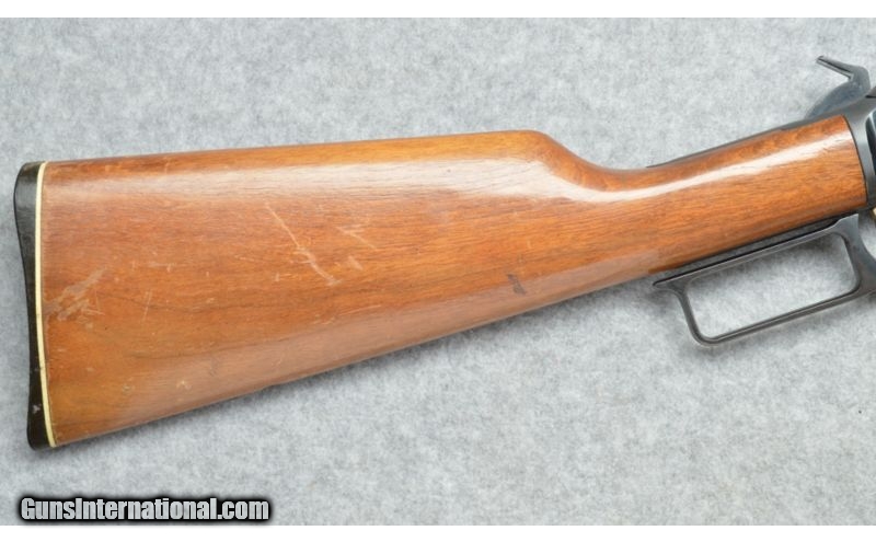 Description: SOLD Manufacturer: 1976 manufacture date. Caliber Info: .44 Mag. Chambers: Lever action six round tubular magazine. Metal Condition: Good, minor surface scratches and minor pitting. Wood Condition: Good, some wear in the finish, minor scratches and small dings and dents. Bore Condition: Excellent, clean, shiny, with sharp lands. Barrels: 20 inch round blue rifled barrel. Triggers: Gold colored single stage trigger. Hammer has a half cocked safe position. Stock: Smooth straight grip with semi gloss finish. Stock Dimensions: 13 1/4 inch length of pull. Fore End: Smooth fore-end matches stock. Butt Pad: Black synthetic butt plate. Weight: 6 pounds. Sights: Gold bead on a blade front sight, semi buckhorn rear sight adjustable for elevation. Item Location: Dundee, MI |