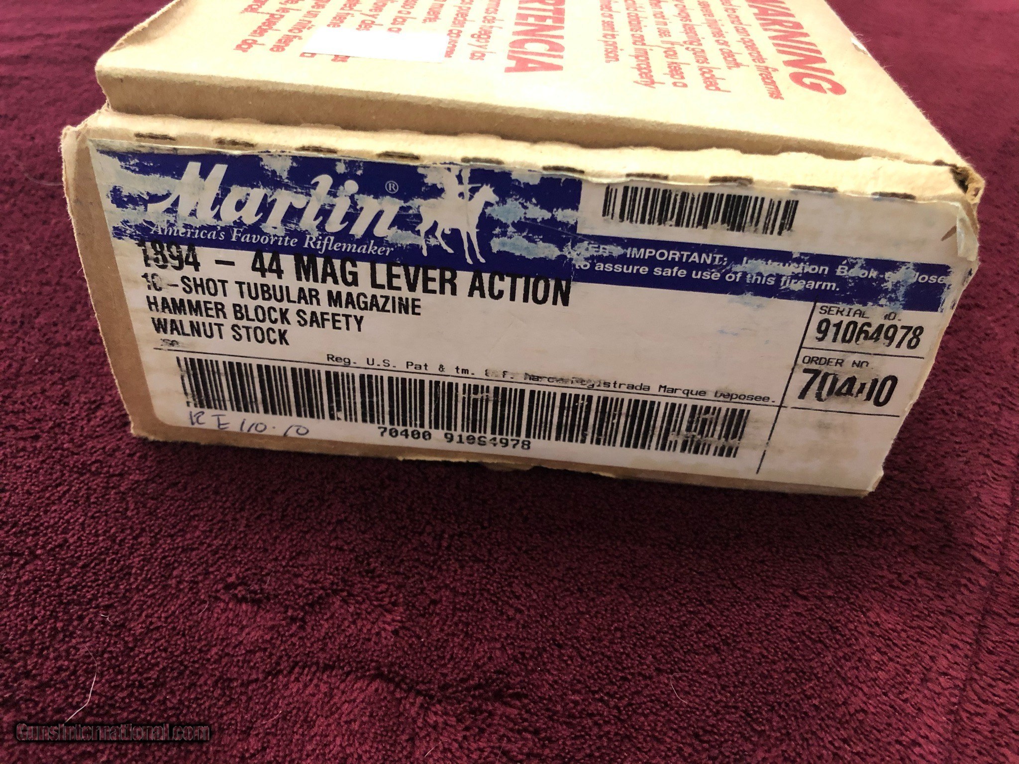 MARLIN 1894, 44 MAGNUM, 20” BARREL, JM MARKED, NEW UNFIRED, 100% COND.