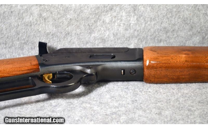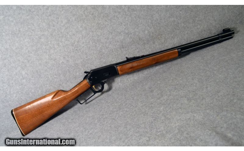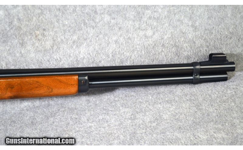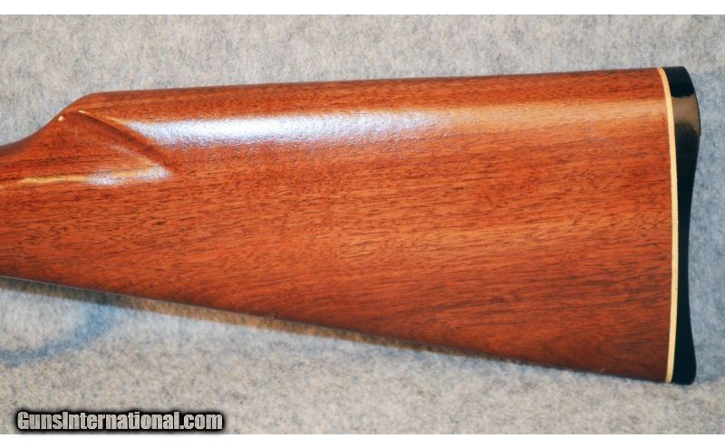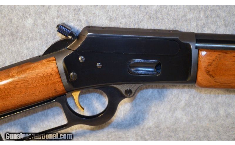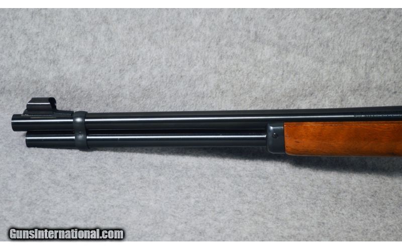 Description: Marlin model 1894 lever action rifle in excellent condition. Manufactured in 1975, and apparently seldom used since. Metal is excellent overall. Stock has a few dents, but otherwise in excellent shape. Overall a fine example is excellent condition. SOLD Manufacturer: 1975 Caliber Info: .44 Remington Magnum. Chambers: Lever action, tubular magazine. Metal Condition: Excellent. Wood Condition: Few dents in stock, otherwise excellent. Bore Condition: Excellent. Barrels: 19 1/2" blued barrel. Triggers: Single. Stock: Walnut. Stock Dimensions: 13 1/2" LOP. Fore End: Walnut. Butt Pad: Original hard plastic butt plate. Weight: 6 Lbs. 6 Oz. Sights: Adjustable rear buckhorn, front hooded post. Item Location: Lexington, KY |