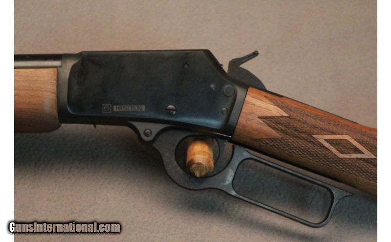 Description: An elegant carbine chambered for .45 Colt. Its handy size is punctuated by a quick-pointing, straight-grip stock design and Old West-styled, adjustable semi-buckhorn sights. Available in 45 Long Colt with a ten-shot tubular magazine. SOLD Caliber Info: .45 Colt. Chambers: Lever Action. Metal Condition: Excellent condition, factory blemish, new in box. Wood Condition: Excellent. Bore Condition: Excellent, bright and shiny. Barrels: 20 Inch round barrel. Triggers: Single. Stock: American black walnut, checkered, straight grip stock. Stock Dimensions: 13 3/8 Inch length of pull. Fore End: American black walnut, blued end caps. Butt Pad: Rubber butt pad. Weight: 6 Pounds 6 ounces. Sights: Semi - buckhorn, adjustable rear sights with front ramp sight. Item Location: East Grand Forks, MN |