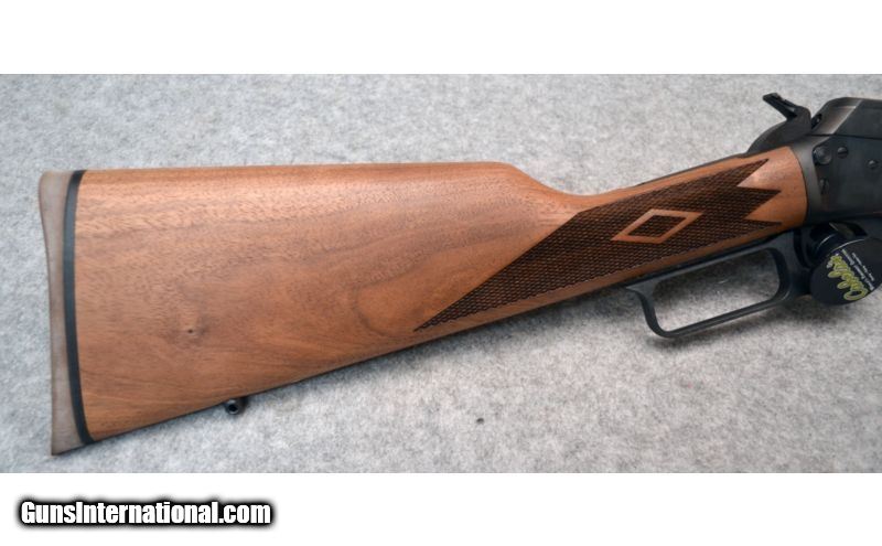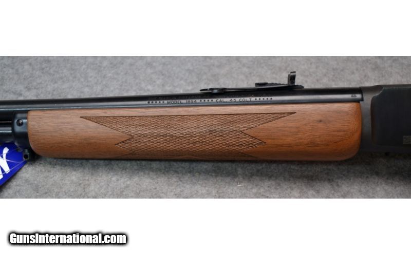 Description: This Marlin 1894 is in excellent overall condition with some minor finish wear on the metal parts. It comes with the factory box and manual. SOLD Caliber Info: .45 Colt Metal Condition: Excellent with minor finish wear Wood Condition: Excellent Bore Condition: Excellent Barrels: 20" Barrel Stock: Diamond checkered wood straight stock Stock Dimensions: 13 1/2" LOP Fore End: Diamond checkered wood Butt Pad: Tan rubber Marlin recoil pad Sights: Front hooded blade, adjustable flip down rear V notch sight Item Location: Christiana, DE |