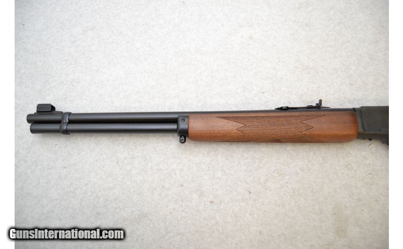 Description: Overall condition of this lever rifle is almost like new in the box. The wood is in great shape with no noticeable marks or damage. The metal is also in great shape; with the exception of a mark through the bluing to the frame from a screw installation at the factory (see pictures). The bore looks pristine. As a factory blemish rifle this firearm will be sound mechanically but may have some cosmetic flaws that escaped notice/mention here. .45 Long Colt SOLD Chambers: Lever-action fed from a 10-round tubular magazine. Metal Condition: Excellent. Wood Condition: Excellent. Barrels: 20 Triggers: Small blued metal with smooth surface. Stock Dimensions: 13 3/8" LOP Fore End: """Diamond-in-diamond"" style checkered American walnut. Butt Pad: Brown rubber pad with the Marlin logo on it. Sights: Adjustable semi-buckhorn rear sight with hooded brass beaded front blade. Factory drilled & tapped for scope mounting. Item Location: Green Bay |