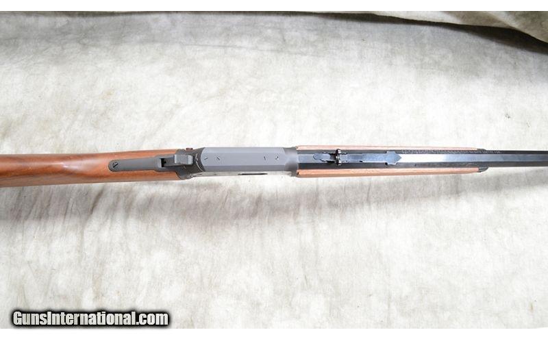 Description: This classic carbine features a 20-inch hexagonal barrel, "iron" sights, walnut stock and forearm, and cross bolt safety. .32-20 WCF SOLD Chambers: 8 Metal Condition: Excellent. Wood Condition: Excellent. Bore Condition: Shiny and bright. Barrels: 24-inch hexagonal. Triggers: Factory trigger. Stock Dimensions: 13-1/2 inch LOP. Fore End: Well-matched walnut. Butt Pad: Black plate. Weight: 6 lb - 11 oz Sights: Brass bead and buckhorn open sights. Drilled and tapped for scope. Item Location: Rogers |