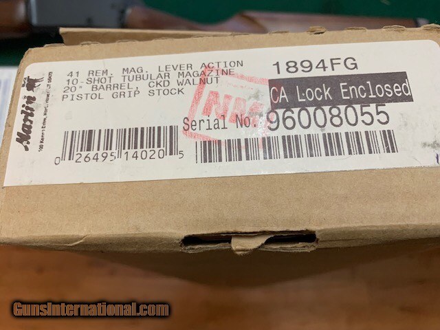 MARLIN 1894 FG, 41 MAGNUM, 20” BARREL, JM MARKED, NEW UNFIRED IN THE BOX WITH OWNERS MANUAL
