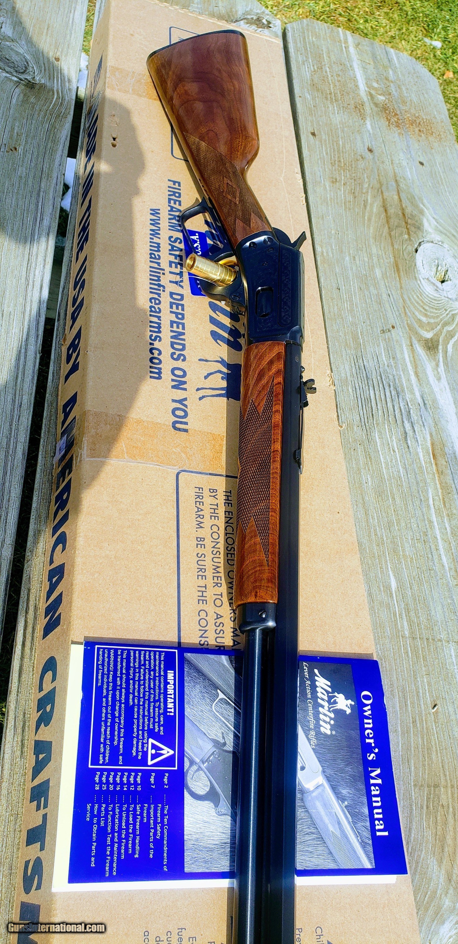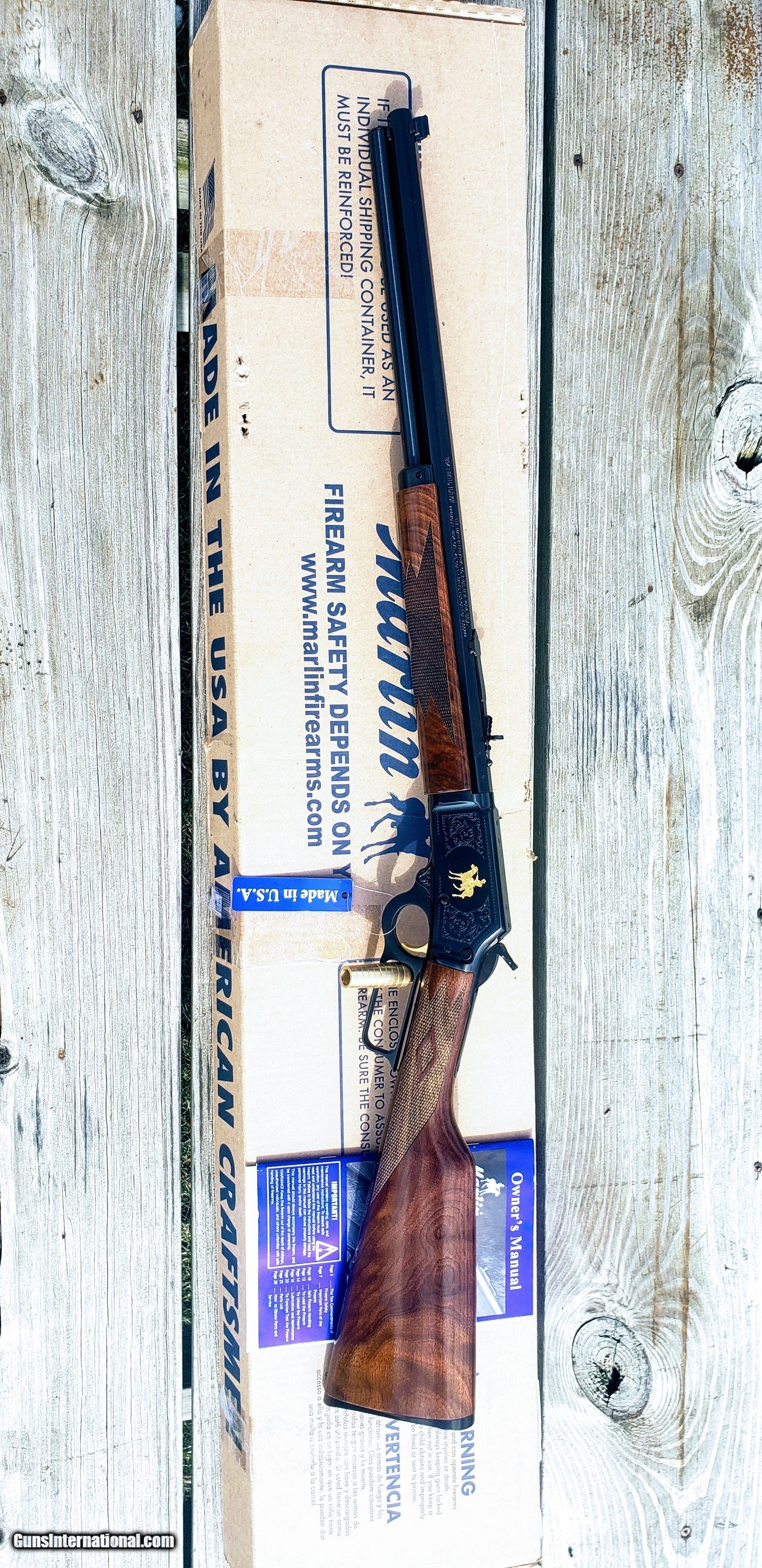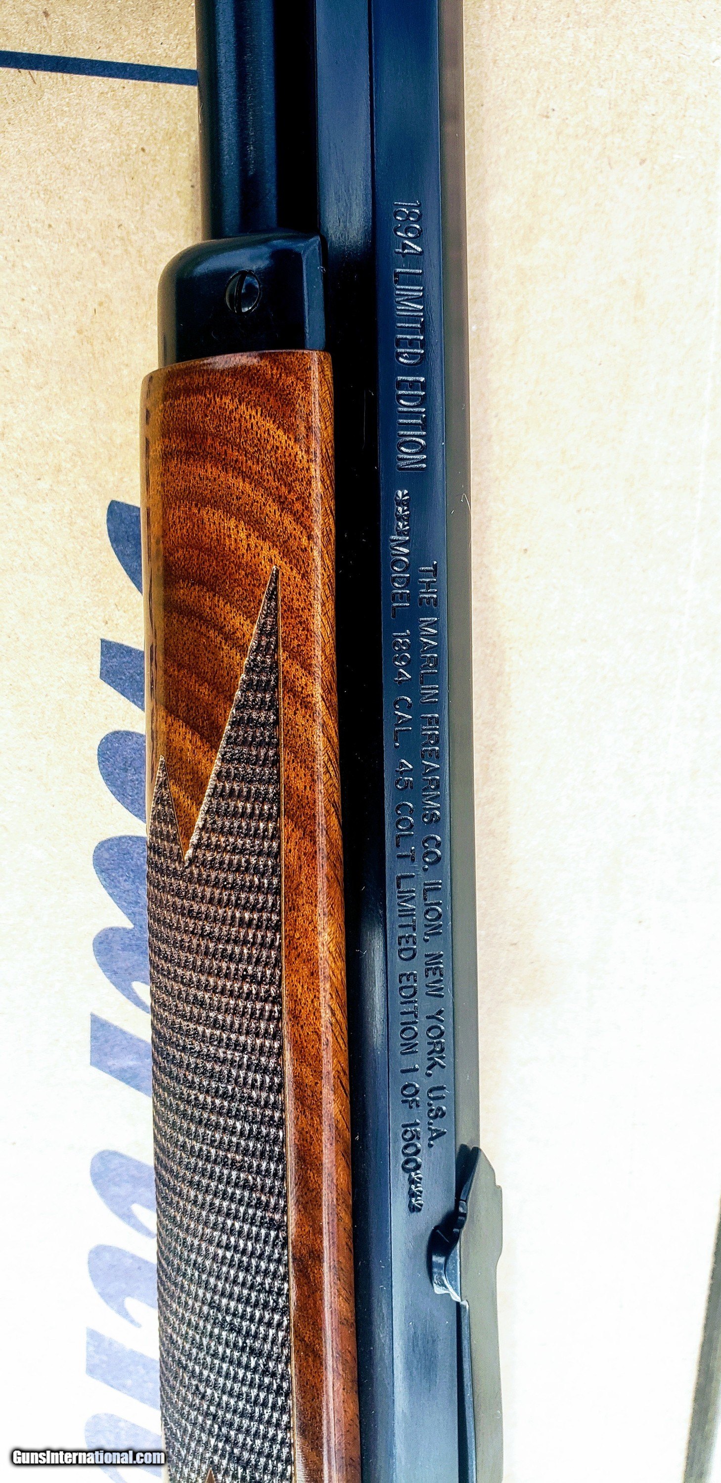 Description: MARLIN FIREARMS CO Walnut Stock Marlin 70403 1894 Walnut Stock Lever 45 Colt (LC) 20\" 10+1 American Black Walnut Stk Blued This Limited Edition 1894 Rifle has both side of receiver engraved with gold in lay and the stock is made of B-Grade American Walnut. SPECIFICATIONS: Mfg Item Num: 70403 Category: RIFLES CENTERFIRE Action :Lever Caliber :45 Colt (LC) Barrel Length :20\" Capacity :10+1 OAL :38.5\" Weight :6.5 lbs Stock Description :American Black Walnut Metal Finish :Blued Twist :1:38\" Barrel Description :Octagon Receiver Material :Carbon Steel Sights :Semi-Buckhorn R, Post Dovetail Cut F Hand :Right Stock Finish Group :Wood Metal Finish Group :Blued/Black SOLD Rifle Caliber: .45 Colt Manufacturer: Marlin Model: 1894CB45 Serial Number: Mr83000g Barrel Length: 20" octagon Condition: New in the box |